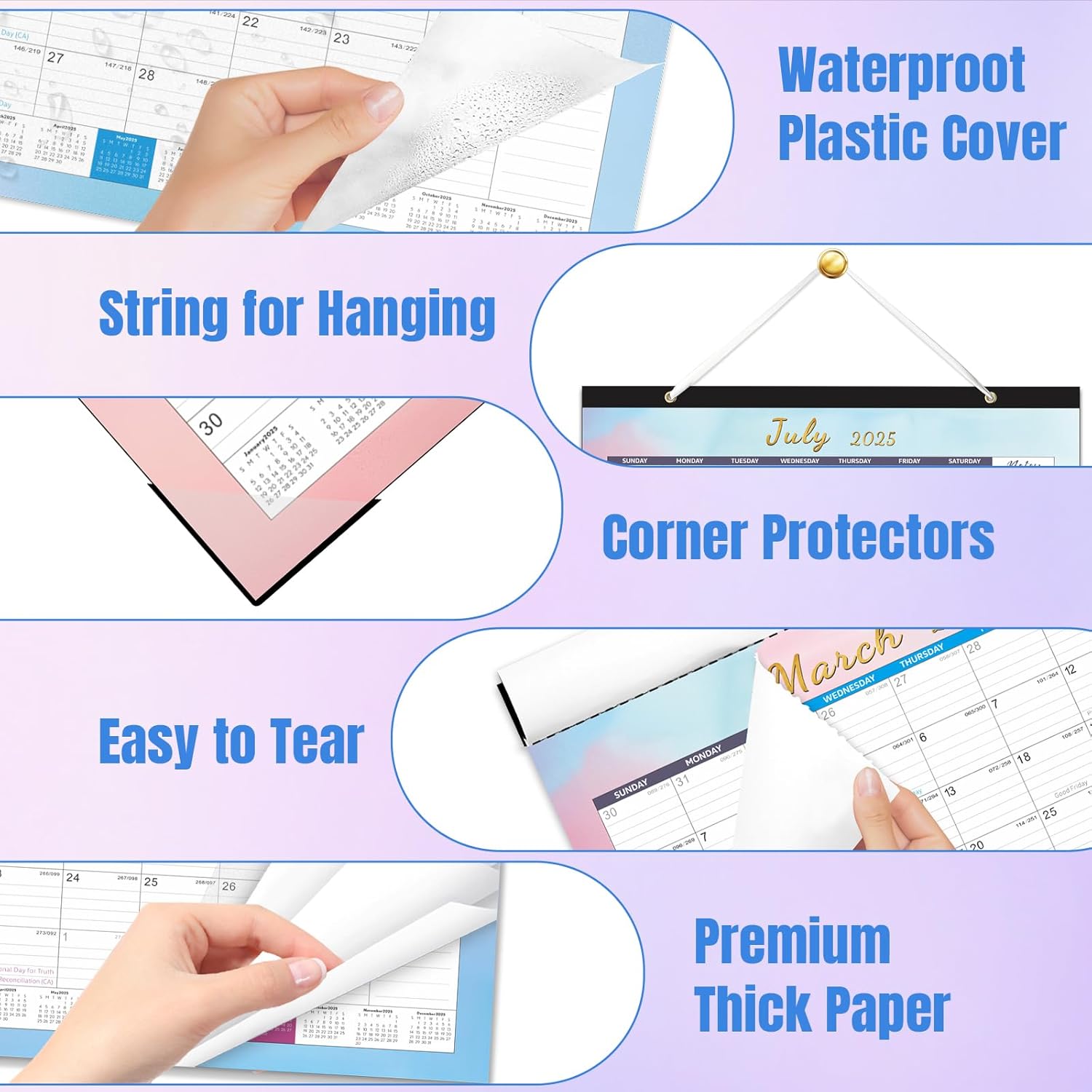 - 📔【For Desktop/Wall/Fridge】Large calendar 2025-2026 comes with a magnetic strip, a hanging string and 3 stickers. It can be placed not only on the desktop, but also on the wall and refrigerator. Stickers help you plan your life better.