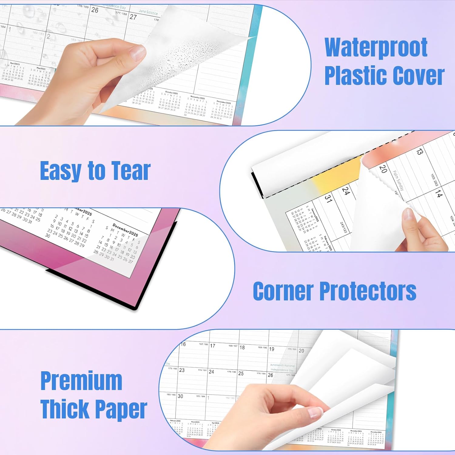 - 📔【Plastic Cover & Two Corner Protectors】Large 2026 desk calendar with transparent plastic cover is effectively waterproof and dustproof, and comes with two corner protectors to keep the page flat (Tip: You can write after opening the cover)