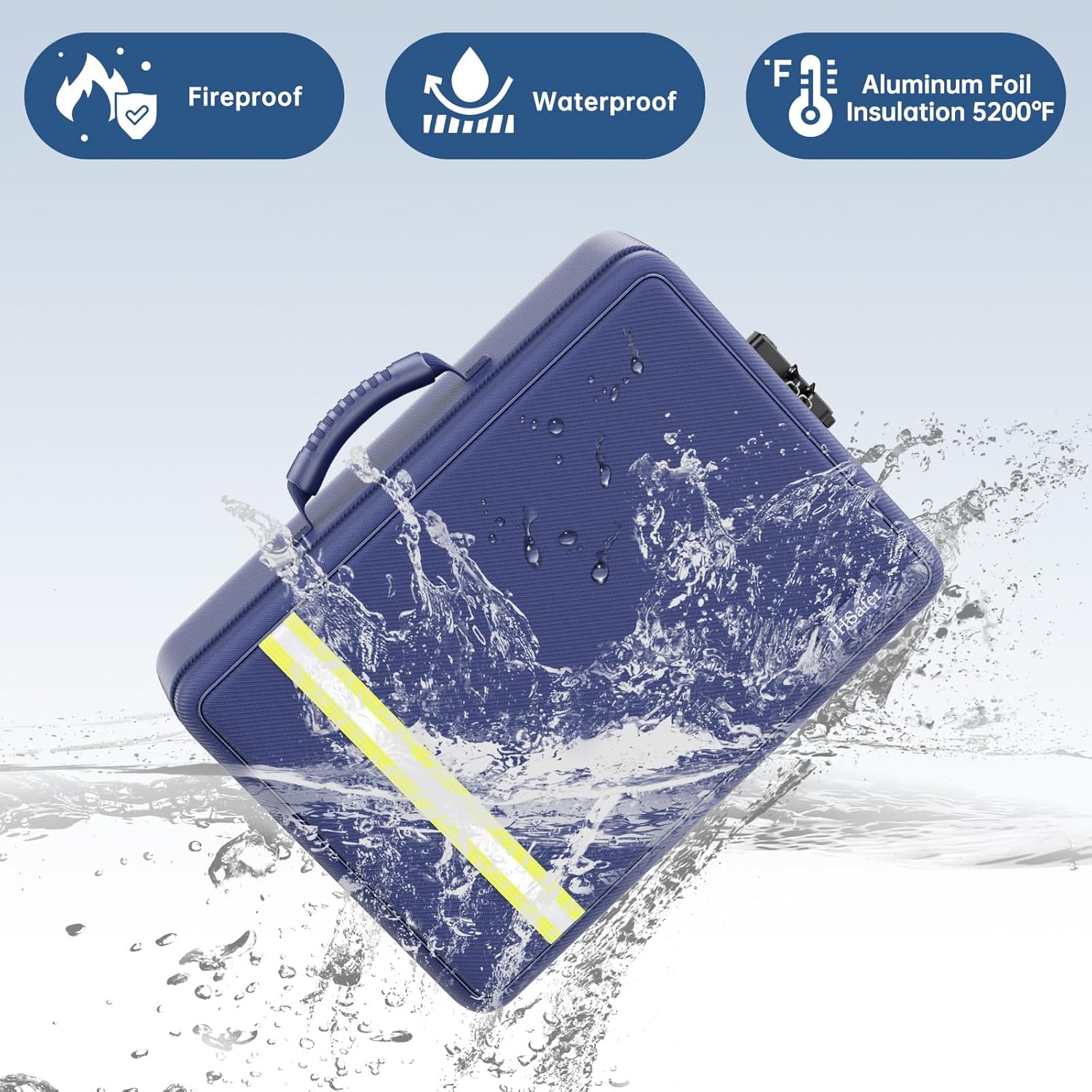 5200℉ Fireproof Document Bag, Insulated Document Box with Lock, Important Document Organizer with Waterproof Zipper, Portable Soft Home Travel Office Safe Storage with 13 Accordion File Folder,Blue