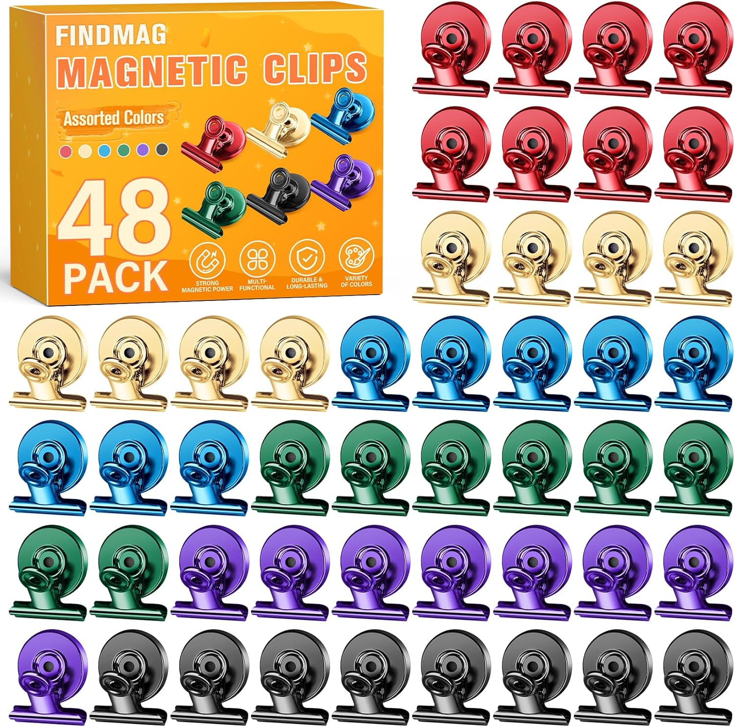 FINDMAG 48 Pack Magnetic Clips for Photo ANG Picture Display, Strong Scratch-Free Refrigerator Magnets, Heavy Duty Clips for Picture Hanging, Whiteboard, Kitchen, Office, School Use.
