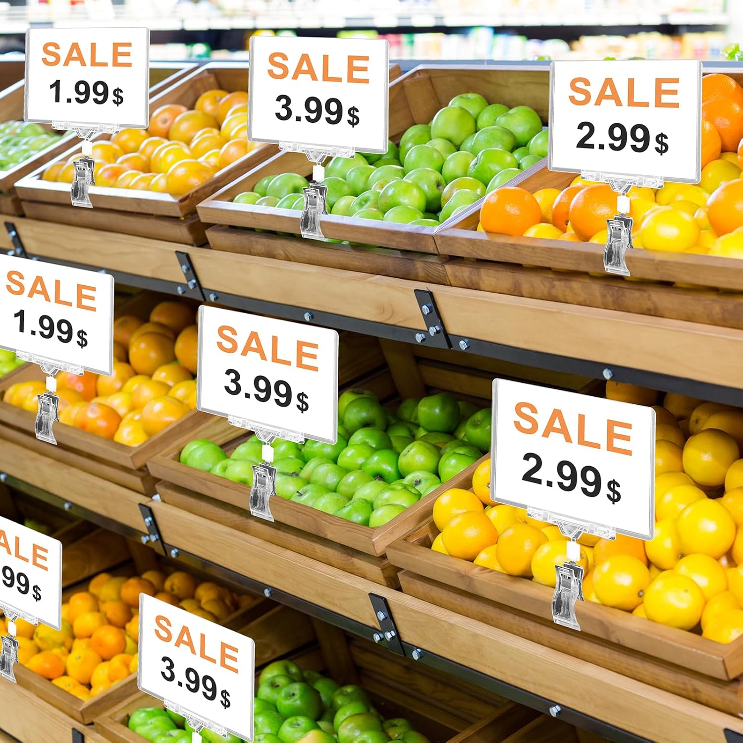 - Office Product Set: each kit contains 20 pieces transparent sign holders and 20 pieces card protectors, sufficient quantity to meet your daily use and replacement needs, more suitable for supermarkets, fruit stalls, clothing stores and other occasions where numerous sign holder clips are applied