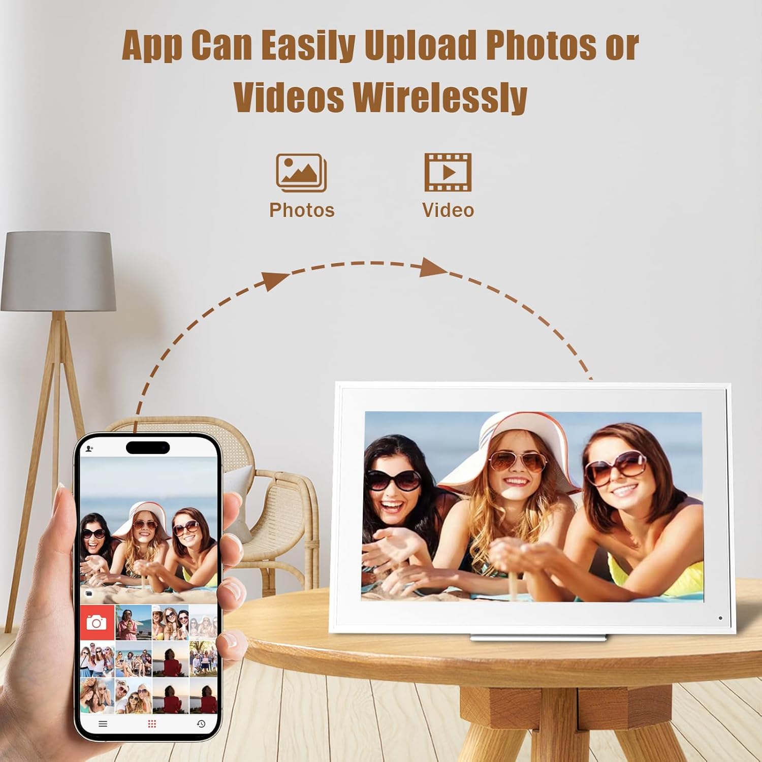 - ✔️𝟏𝟓.𝟔 𝐈𝐧𝐜𝐡 𝐈𝐏𝐒 𝐇𝐃 𝐓𝐨𝐮𝐜𝐡𝐒𝐜𝐫𝐞𝐞𝐧 𝐃𝐢𝐬𝐩𝐥𝐚𝐲:The 15.6” WiFi digital picture frame is featured with a high-quality HD 1980*1080 Resolution IPS touch screen which allows you to get a wonderful picture visual from any angle. Perfect for displaying your family calendar and photos in high resolution.,Whether you’re checking schedules, managing household chores, or viewing photos, everything is displayed with outstanding visual quality, enhancing the overall user experience.Customizable color-coding and adjustable fonts ensure readability for all ages- ideal for grandpa's/grandma's clear viewing.