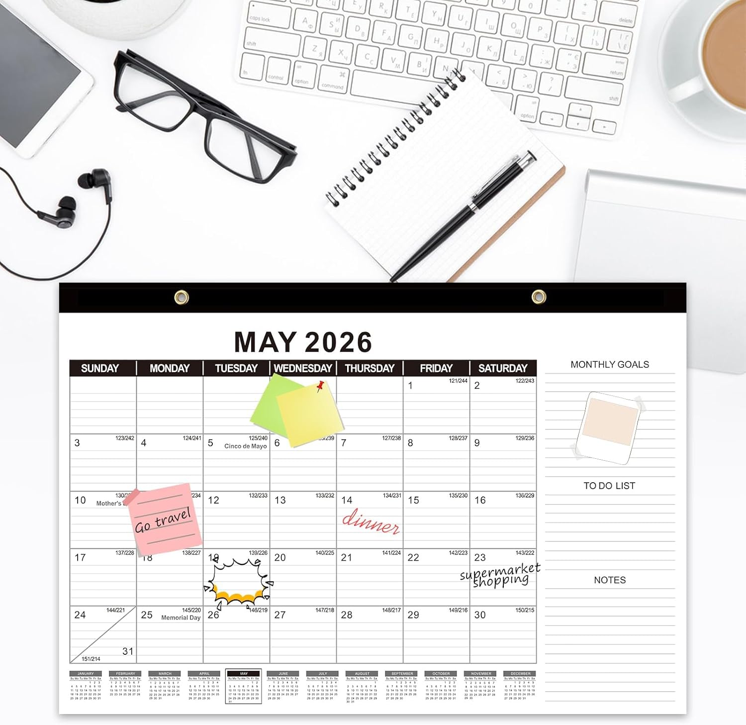 - EASY TO USE: Our large desktop calendar planner 2025-2026 is a great tool for long-term planning, 2 holes make it good for wall hanging. Two black corners keep pages flat during hanging or desktop use and the perforated design of each page allows you to tear off and move to the next month easily, averting disorder