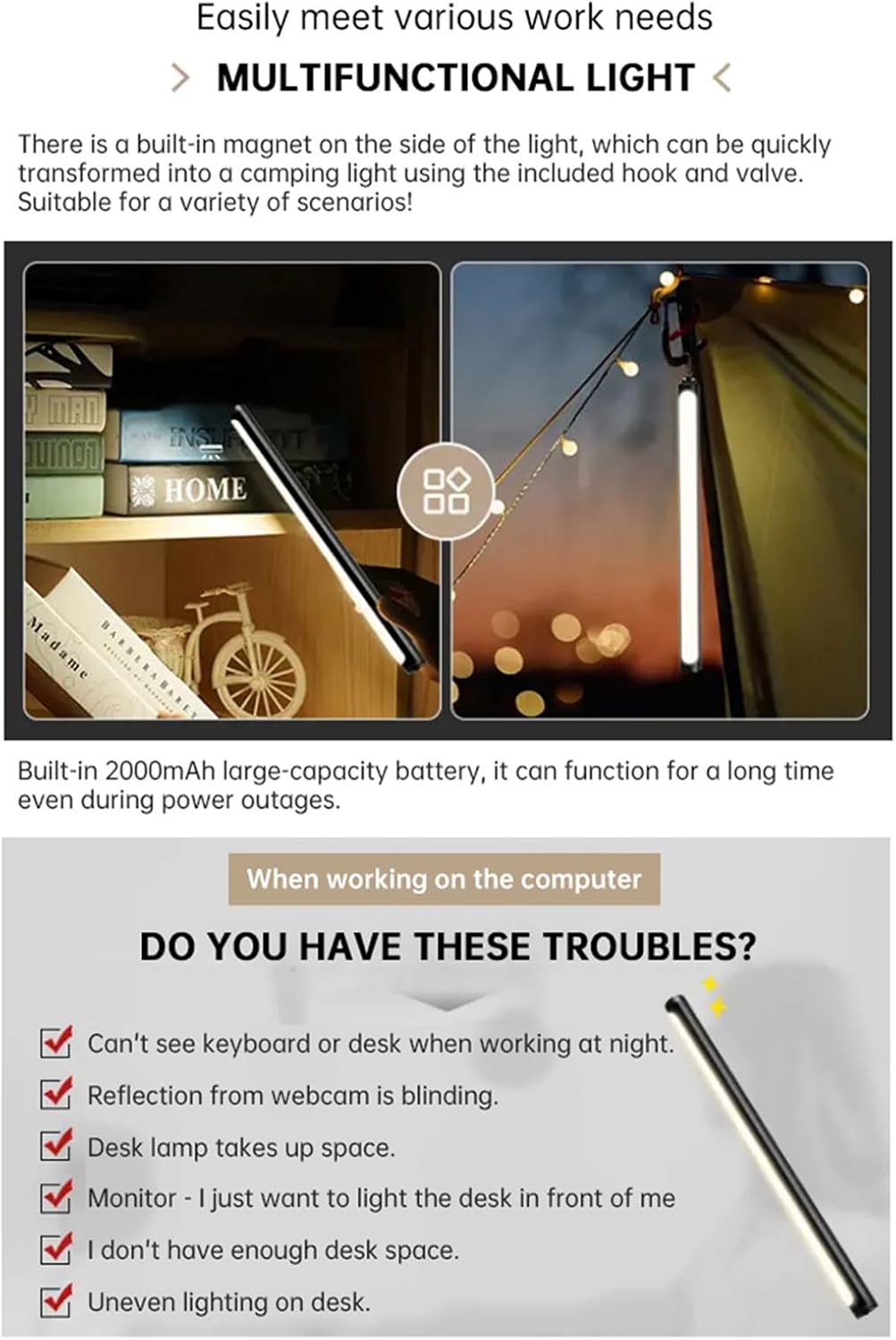 Computer Light with Clamp, Desk Lamp, Lamps for Office, 5500K Ultra Bright Adjustable Dimming, Desk Lights for Computer, Outdoor use.