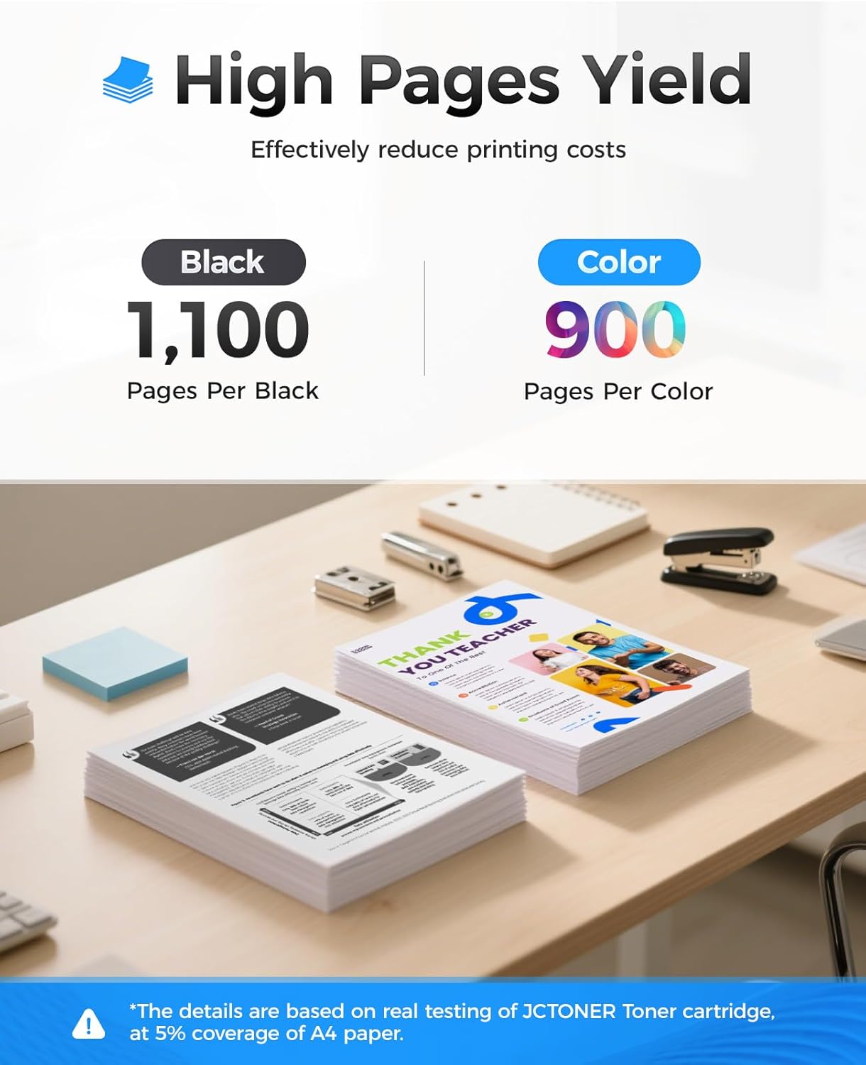 - High-Yield: up to 1,100 pages per 204A Black and pages per 900 Color (Total 3,800 pages, 5% coverage).