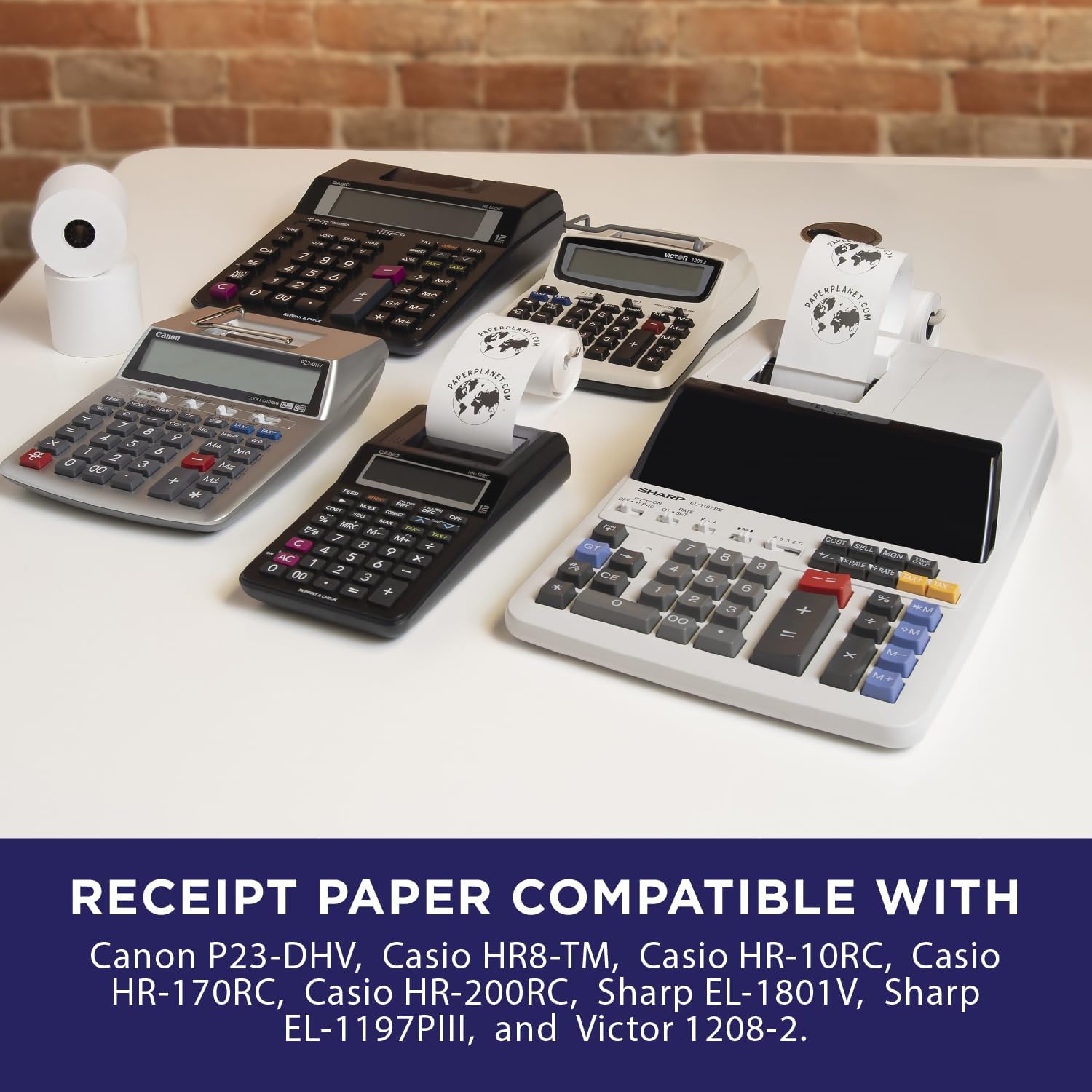 - Compatibility with Popular Models: These adding machine paper rolls are compatible with a wide range of models. Whether you're using an adding machine, cash register printer, or calculator, these paper rolls work seamlessly to keep your operations running smoothly and efficiently, offering versatility across various devices. Compatible models: Canon P23-DHV, Casio HR8-TM, Casio HR-10RC, Casio HR-170RC, Casio HR-200RC, Sharp EL-1801V, Sharp EL-1197PIII, Victor 1208-2.