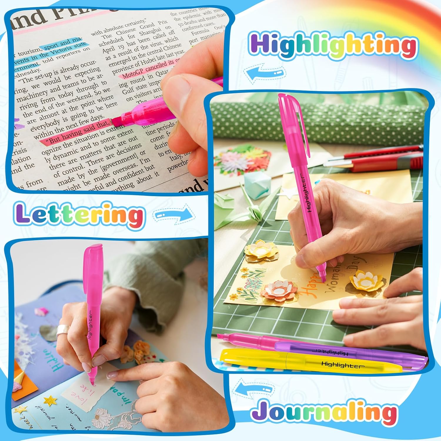 - Long-Lasting and Smudge-Free: The highlighters are designed to be used on a wide range of paper and won't penetrate typical paper, quickly dry and Leak-Proof. Remember to be sure after use keep the pen cap closed to prevent the ink from drying out.