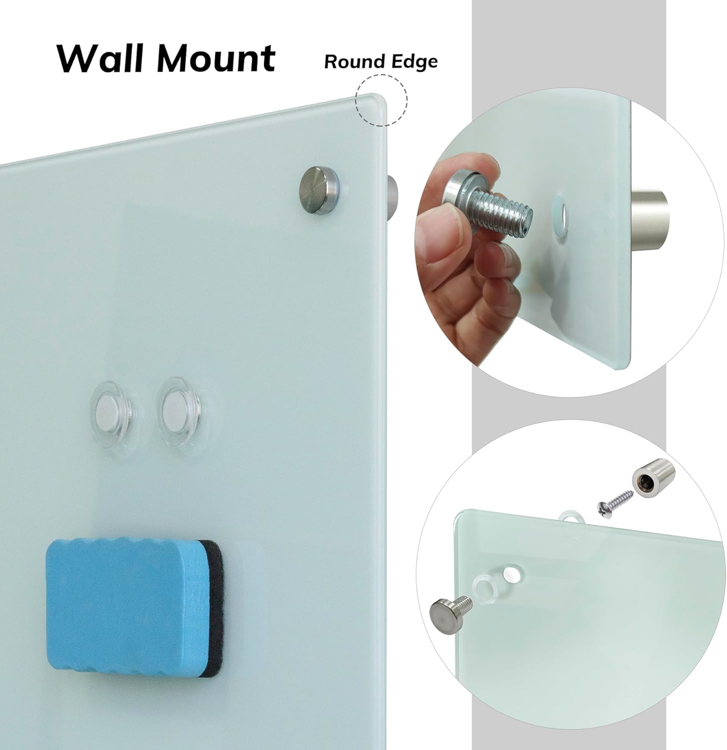 - Durable & High-Performance Surface Crafted from 4mm premium tempered glass, our whiteboard resists stains, ghosting, and scratches. Enjoy effortless writing and cleaning with a consistently smooth surface that stays marker-free.