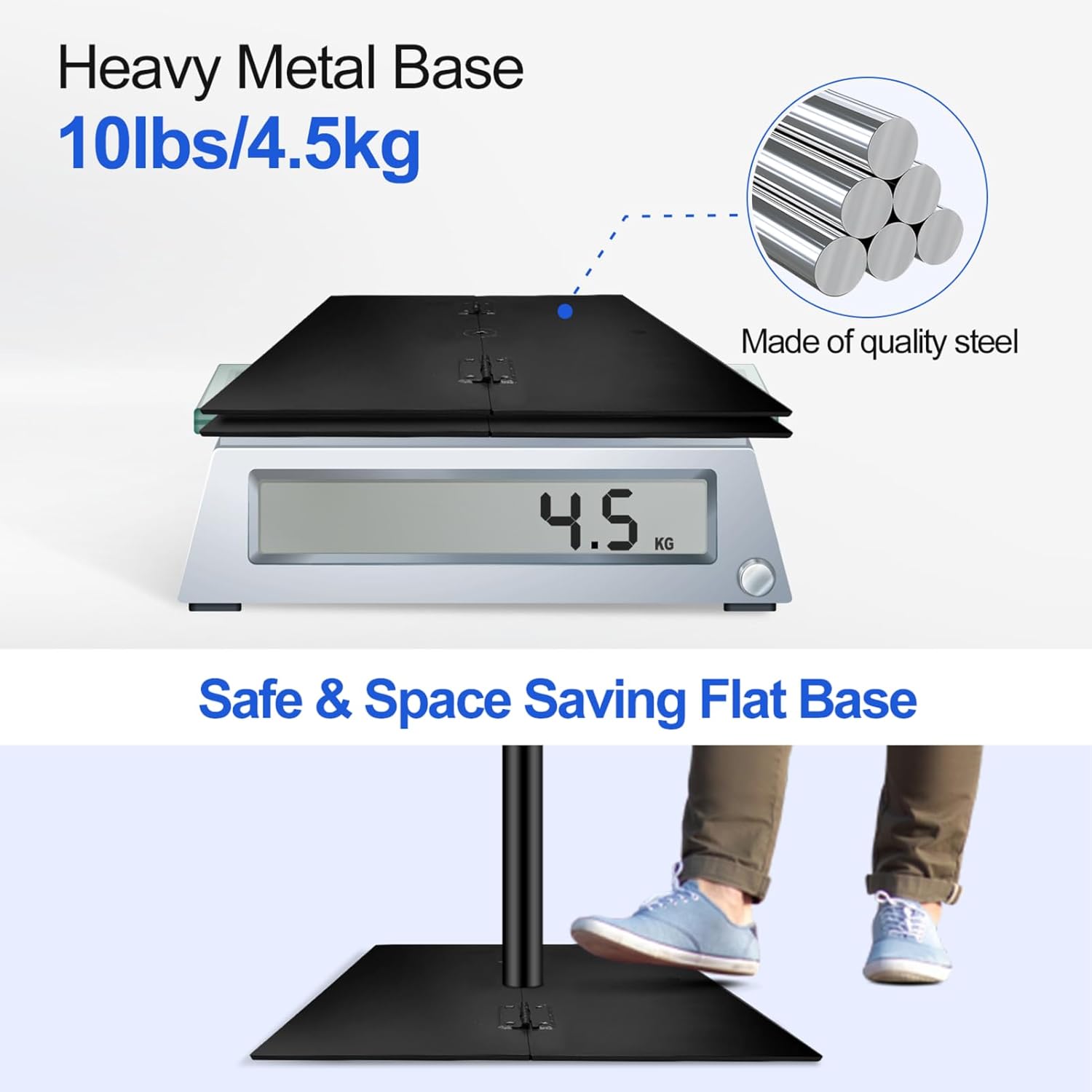 - 【Heavy Metal Base】 The base is made of good quality iron. And the large contact area as well as the weight ensure the stable support. Meanwhile, the heavy duty flat base can avoid the exposure of stand