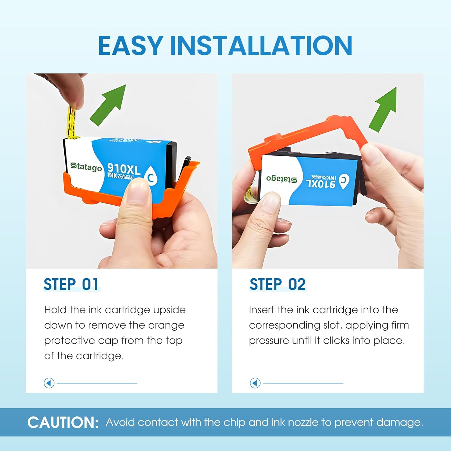 - Superior Imagery: Experience the brilliance of Statago's 910xl ink cartridges, designed for HP 910 910XL ink cartridges. These cartridges ensure outstanding print quality, yielding documents, photos, and graphics that are crisp, vivid, and true to life. Statago 910XL 910 ink is professional prints, whether detailing text or capturing images.