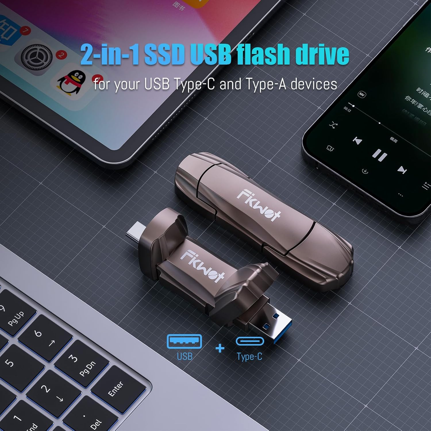 External SSD USB Flash Drive 512GB, Up to 2050MB/s 2-in-1 Type C+ USB A USB3.2 Gen2 Solid State Thumb Drive SSD Stick for iPhone 15/16/Android/Windows/Mac/PC/Laptops