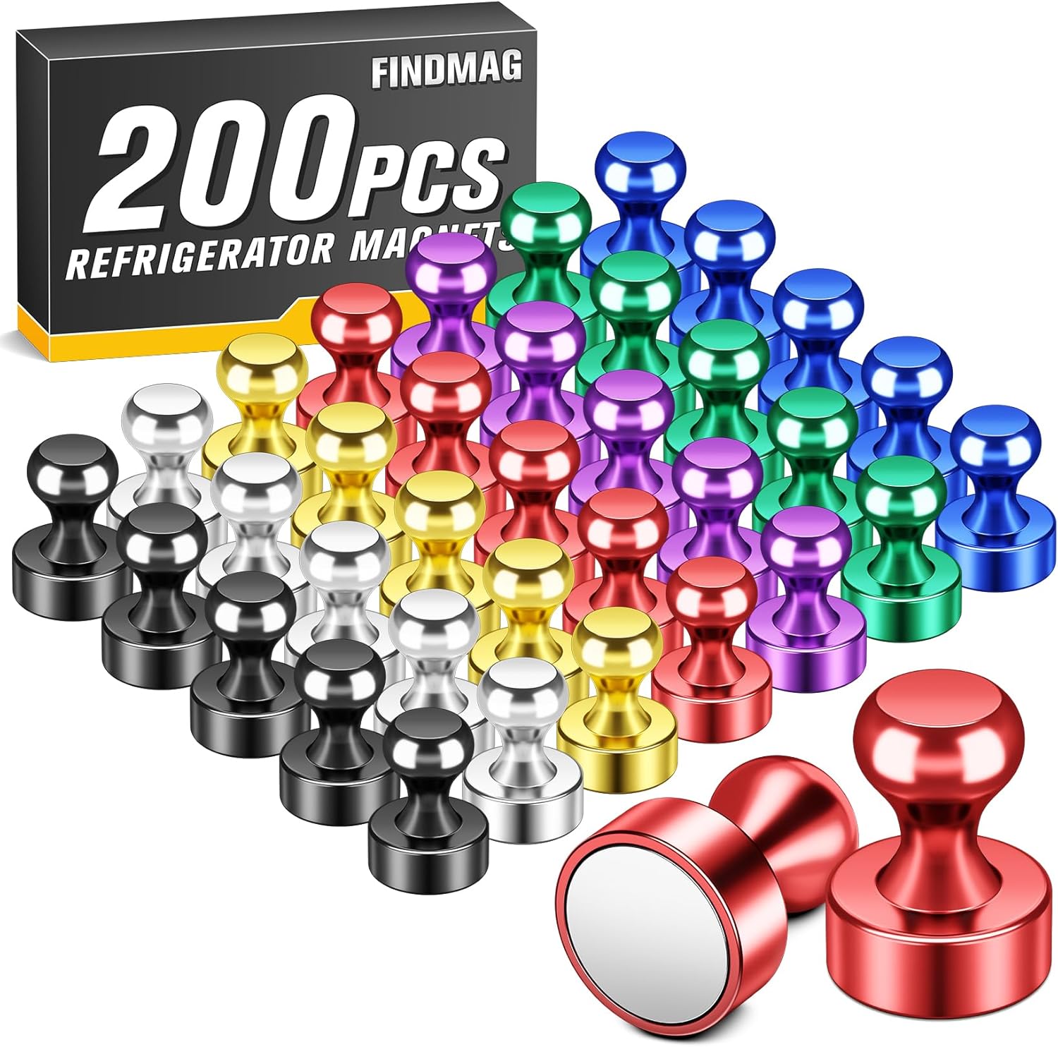 FINDMAG 200 PCS Colorful Fridge Magnets, Small and Strong Magnets for Whiteboard, Small Push Pins for Adults, Classroom, Map, Home Decor