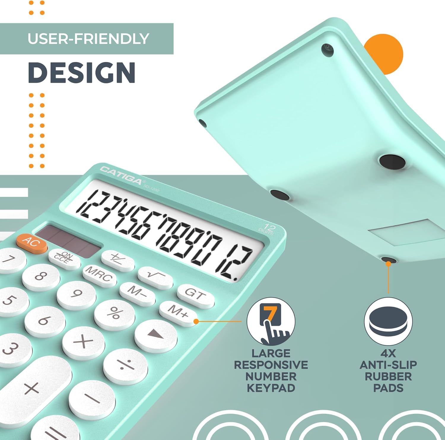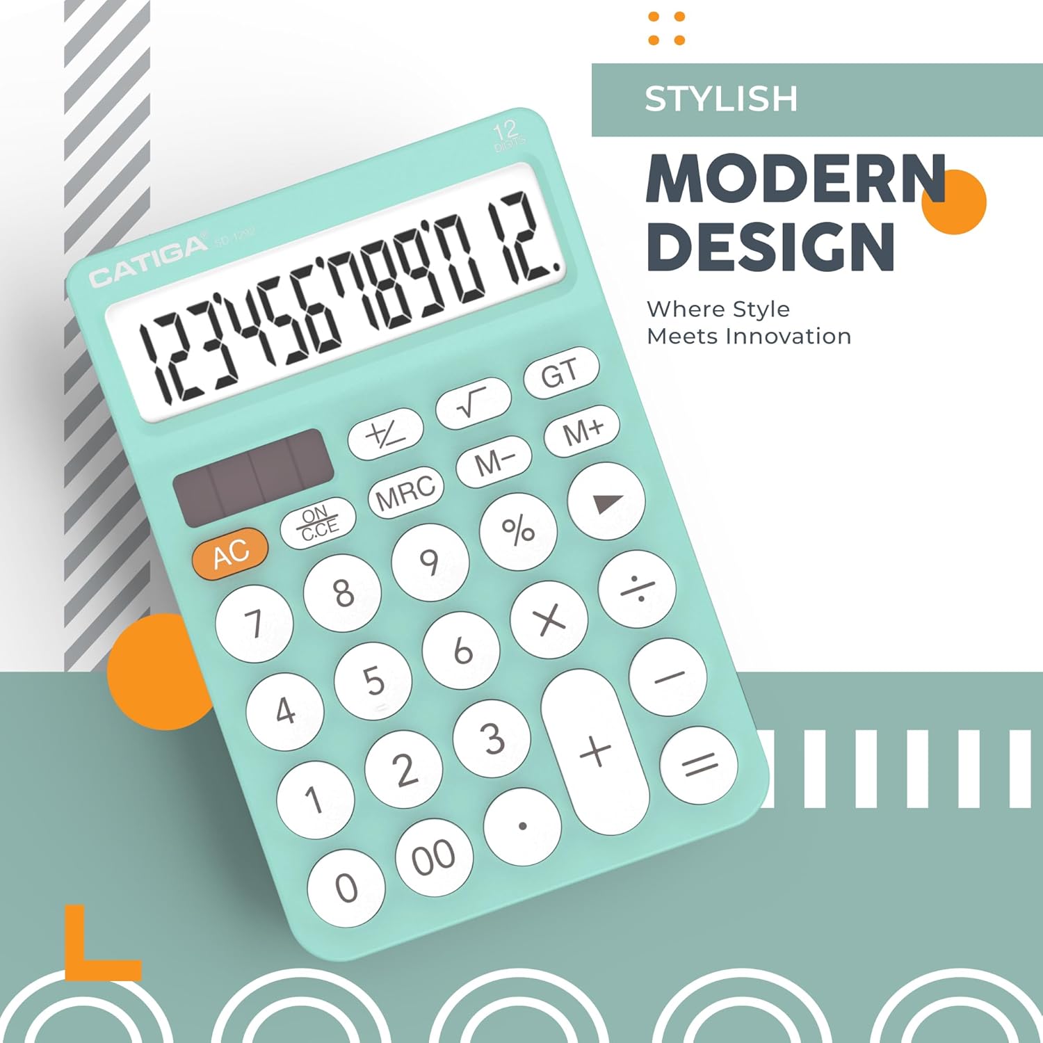 - 【Essential Cute Calculator for School and Study】The CATIGA 12-digit desk calculator is a cute calculator designed for students and daily users. Its lightweight, colorful build makes math tasks fun and easy. Perfect as a desktop calculator for school, home, or office, it delivers reliable performance with vibrant style.