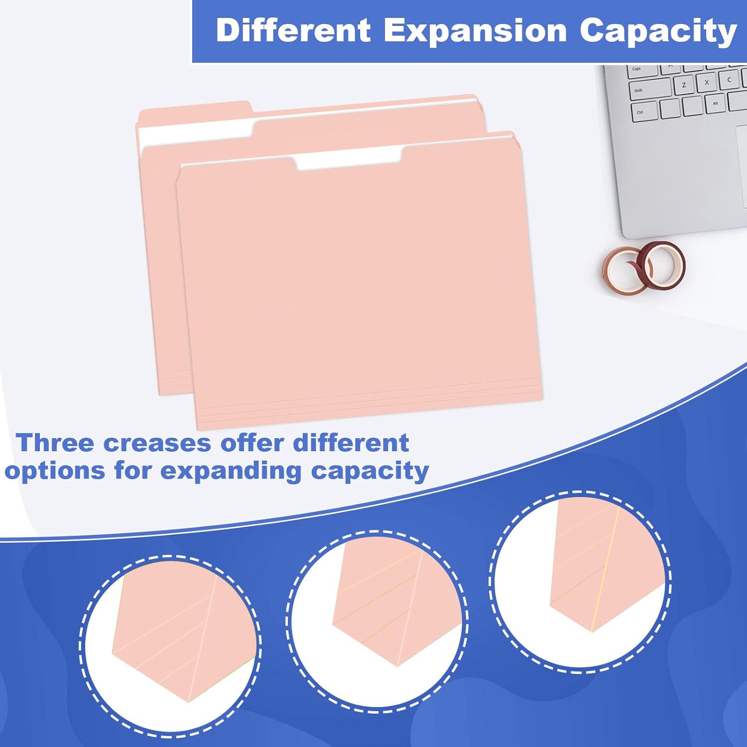 - ECONOMICAL & ECO-CONSCIOUS: Protect the environment by using tabs made with recyclable paper. Recyclable pink filing folders (120-count) for neatly storing and organizing documents.