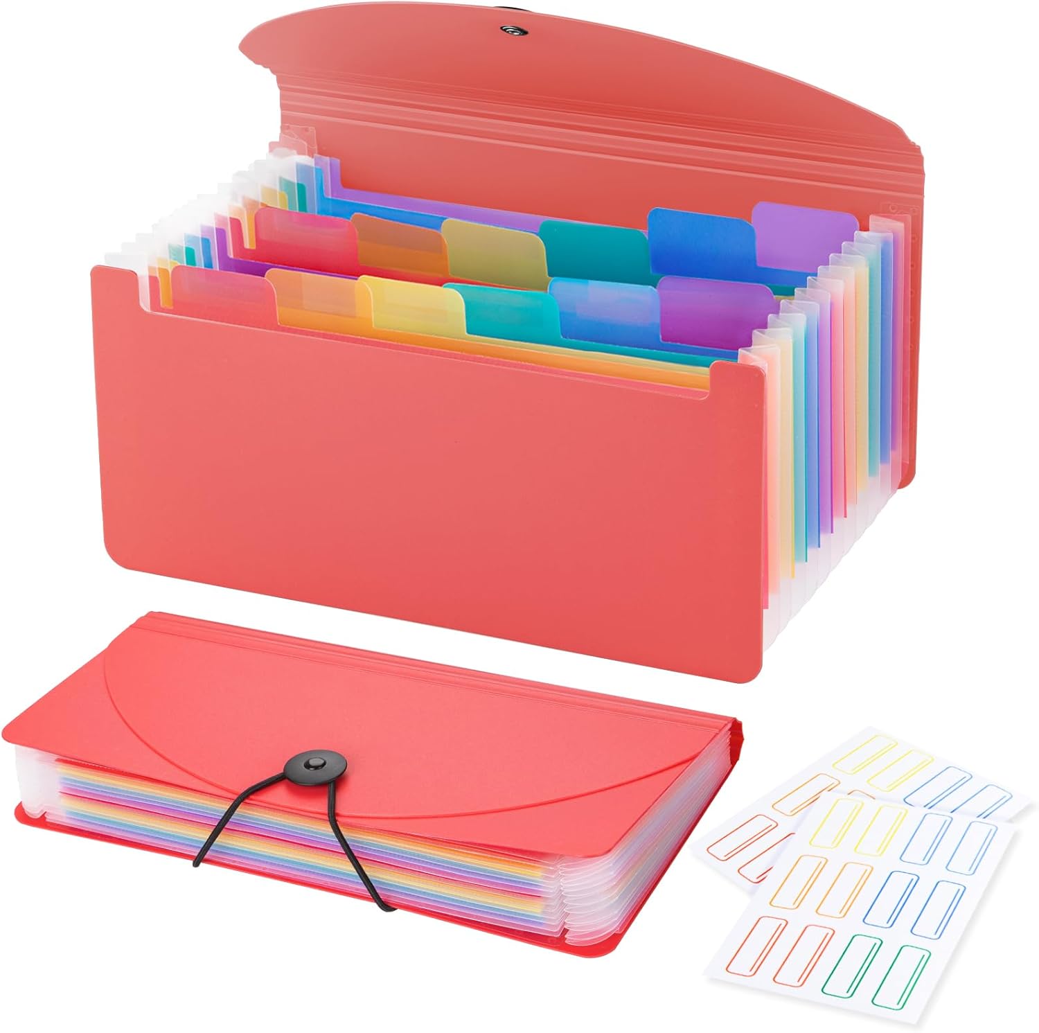 13 Pocket A6 Receipt Organizer, 2 Pack Small Accordion File Organizer, Coupon Organizer with Labels - Pink