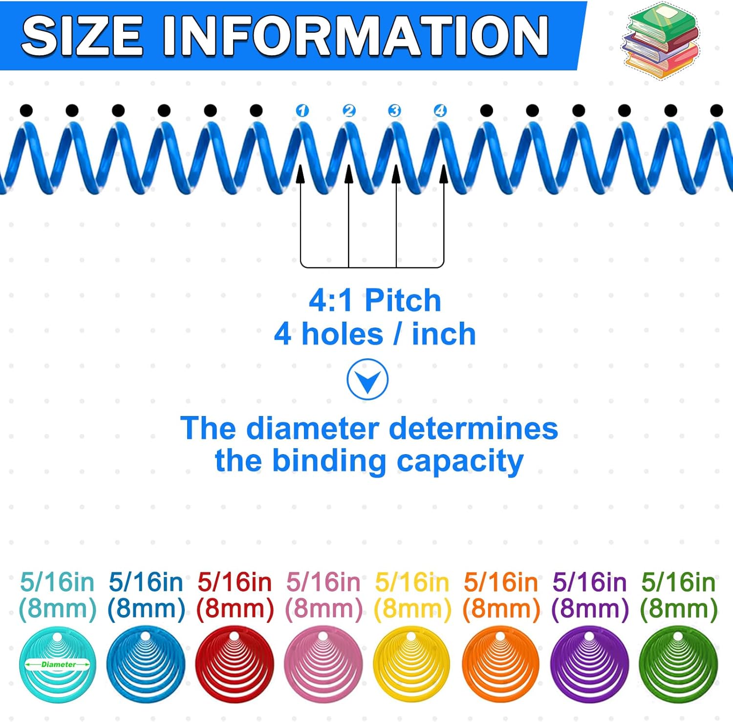 - 【Value Pack】The package contains 120 pieces of spiral binding coils in 8 different sizes, 15 pieces per size, rich quantity and size will meet your daily binding projects' use needs. You can also share with your friends. Fit for most wire binding machines, such as GBC, Trubind, and Fellows binding machines.