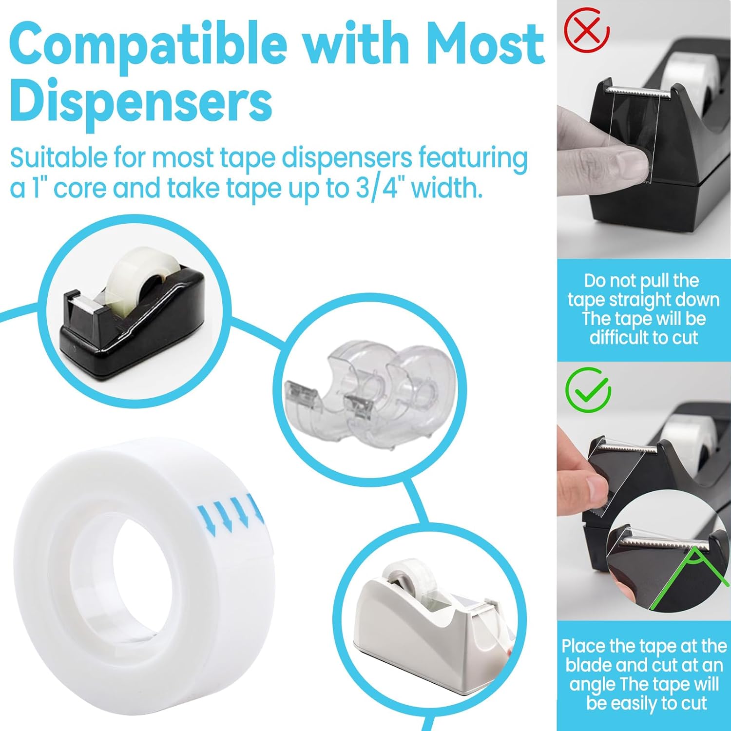 - 🔌 Universal Dispenser Fit & Eco-Conscious Design: Compatible with most tape dispensers featuring a 1" core and accommodating tape up to ¾" width. A sustainable choice for eco-friendly crafters, teachers, and families