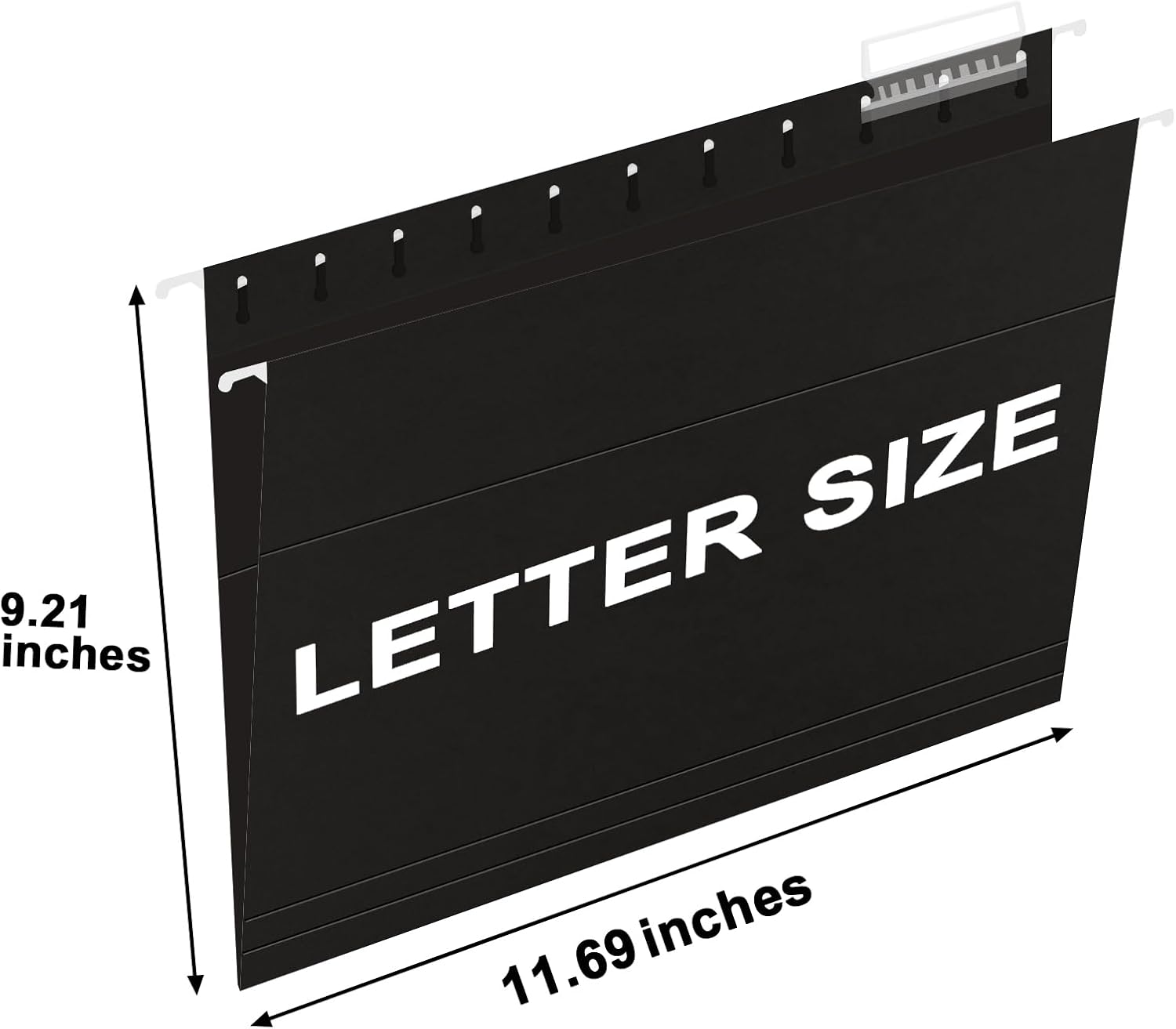 HERKKA Hanging File Folders, 60 Pack Reinforced Letter Size Hanging Folders, Designed for Bulky Files, Filing Cabinet, 1/5-Cut Adjustable Tabs (Black)
