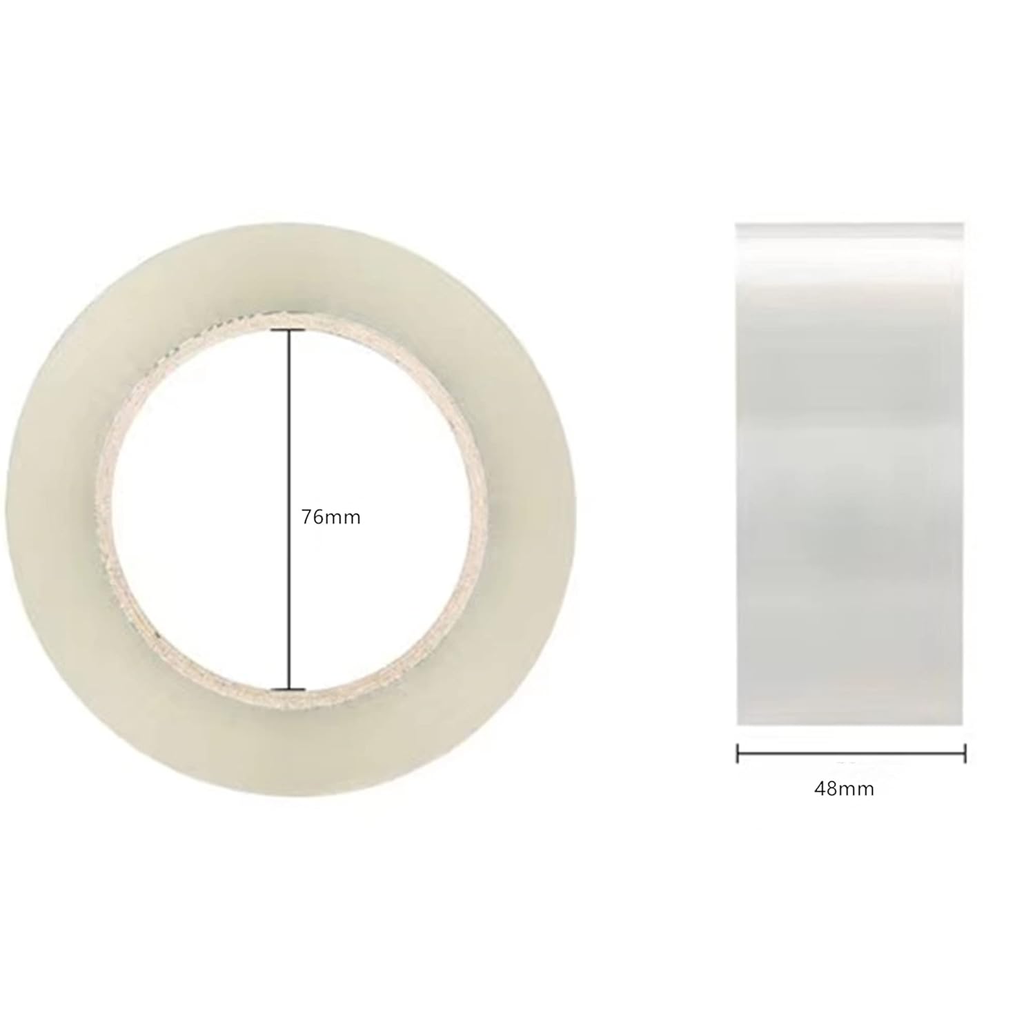 - Shipping tape: The inner core of the shipping tape has a diameter of 3 inches, a width of 1.88 inches, and a length of 65 yards.