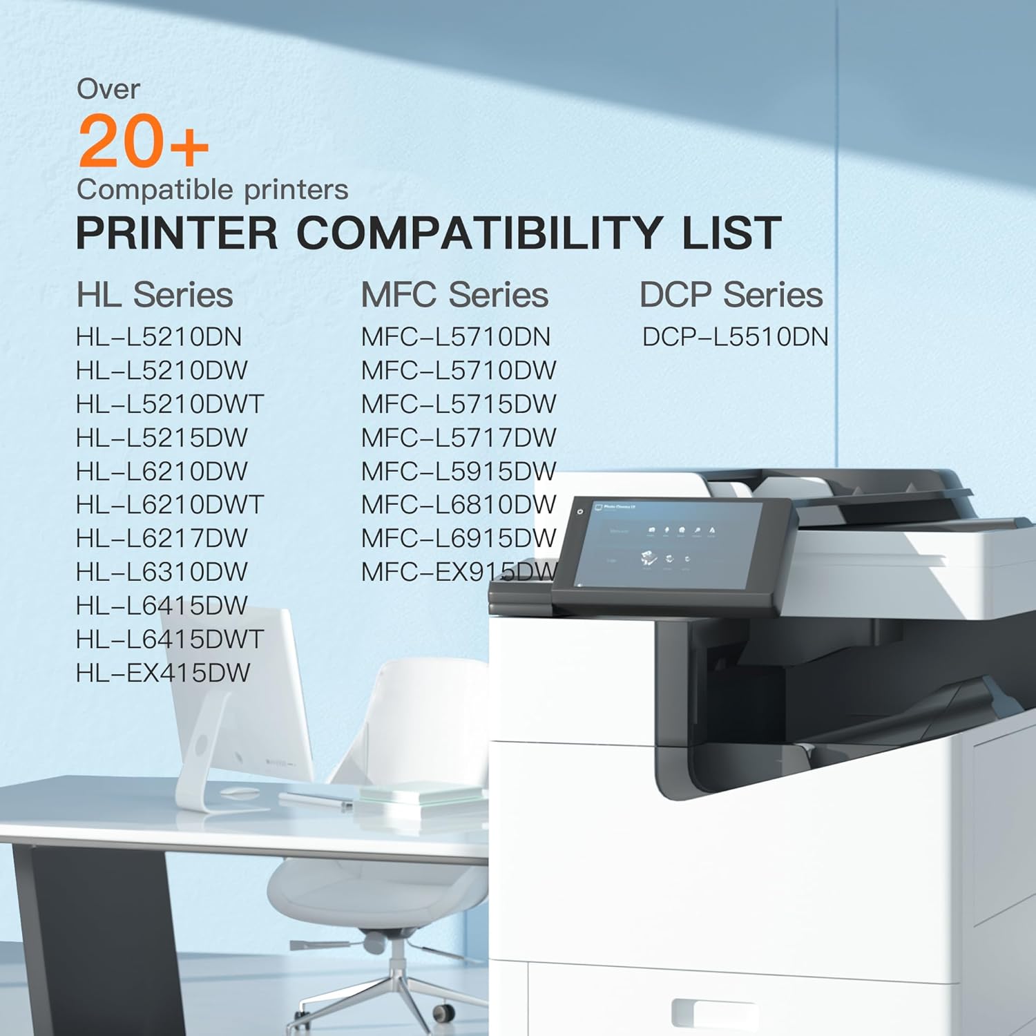 - TN920XL Compatible for Brother Printer: HL-L6210DW, HL-L5210DN, HL-L5210DW, HL-L5210DWT, HL-L5215DW, HL-L6210DWT, HL-L6217DW, HL-L6310DW, HL-L6415DW, HL-L6415DWT, HL-EX415DW, DCP-L5510DN, MFC-L5710DN, MFC-L5710DW, MFC-L5715DW, MFC-L5717DW, MFC-L5915DW, MFC-L6810DW, MFC-L6915DW, MFC-EX915DW