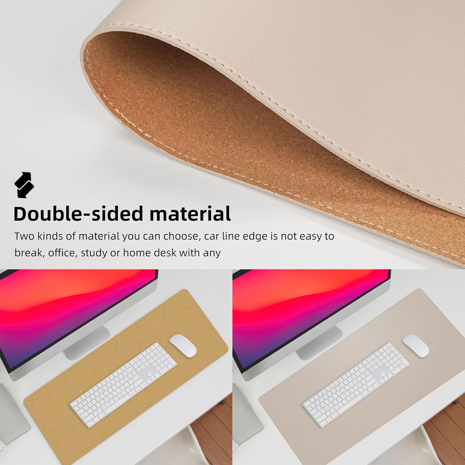 AFIING Leather Desk pad Protector, Large Non-Slip Office Desk Mat with Natural Cork & PU Leather, Waterproof Writing Mouse Pad for Office and Home (47in*23in, Beige)