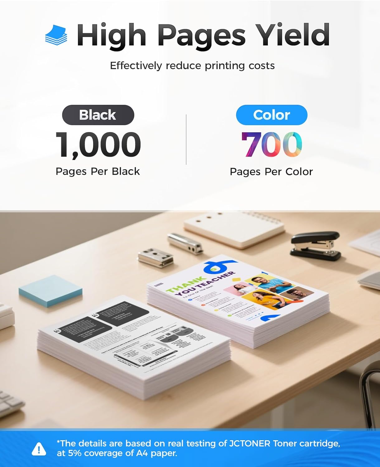 - The latest chip version: The JCTONER toner cartridges are equipped with the latest version of built-in chips, ensuring perfect compatibility between each toner cartridge and the printer. This enables you to print efficiently while maintaining stability and reliability, making installation convenient without the need for manual adjustments. All JCTONER toner cartridges have undergone strict quality testing and have obtained ISO9001 certification. High-quality toner cartridges can meet the demand for high printing volume. The fine toner ensures clear and stain-free printing results and extends the lifespan of the printer. You can purchase with confidence.