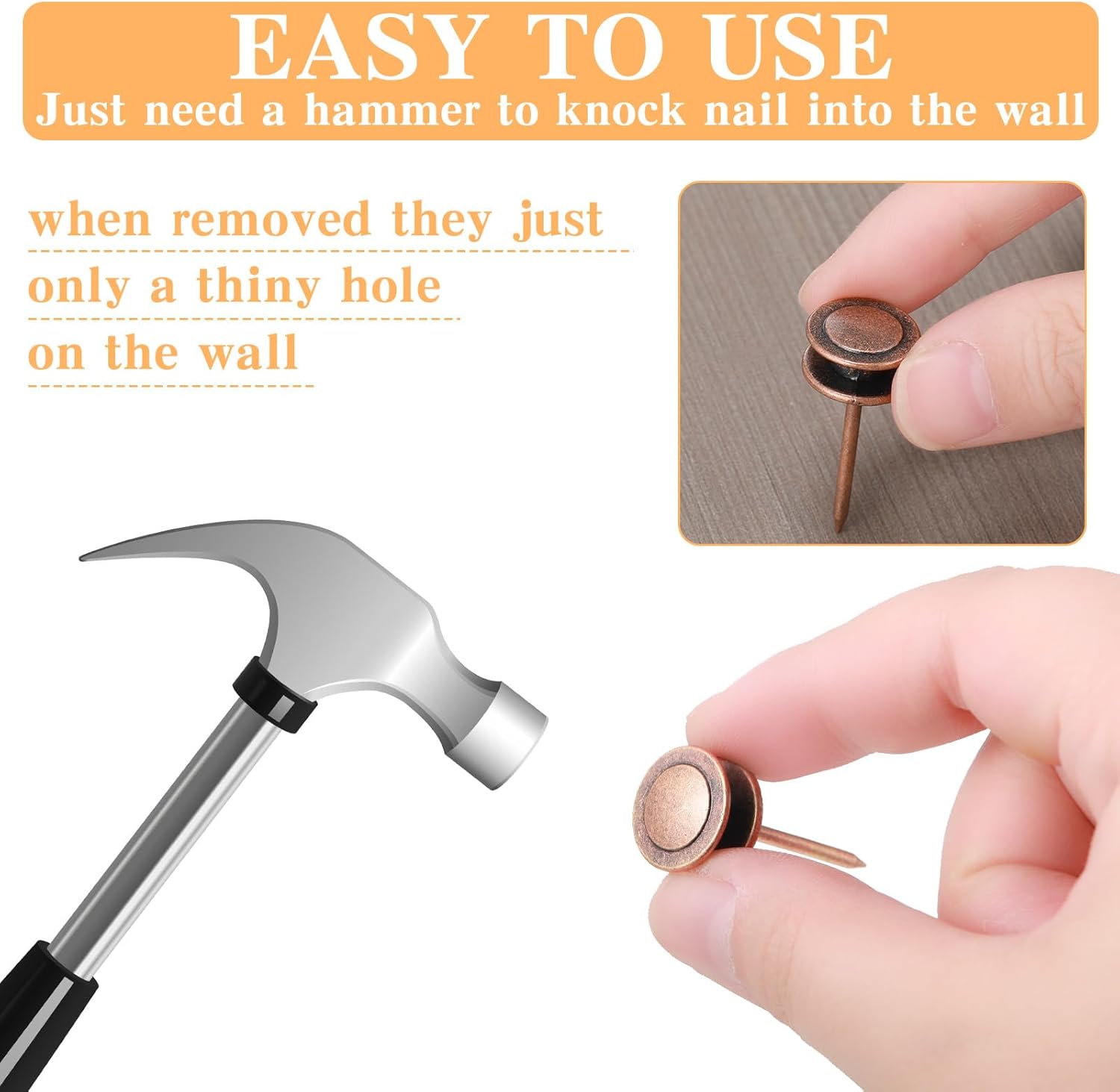 - Easy to Use: these wall tacks are suitable for wooden walls and drywall, and you can fix the photo hooks on the wall with a small hammer (not included); In addition, these hanging nails will only leave a small nail hole after removal, which will not ruin your wall or affect the beauty of the whole house
