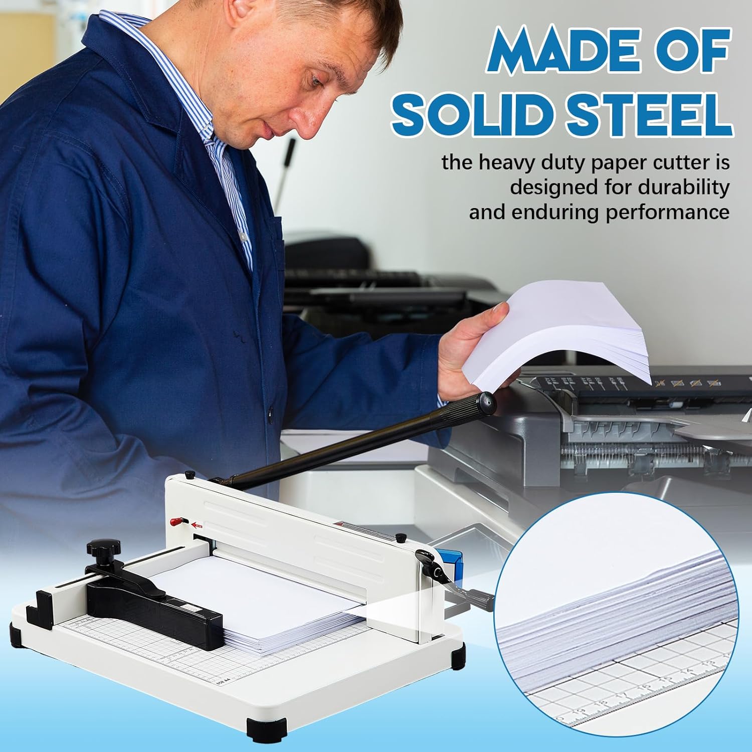 - Sturdy and Durable: made of solid steel, the heavy duty paper cutter is designed for durability and enduring performance; The sharp steel blade ensures precise and smooth cutting, stable rubber feet add to its steadiness, eliminating the worry of slipping