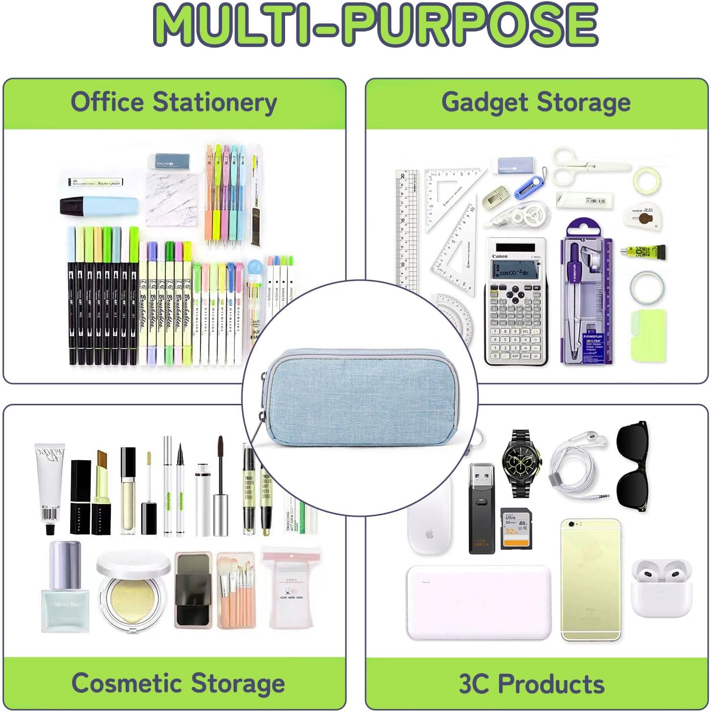 - Large Storage: Dimensions are 8.2*2.55*4.5in (20.5*6.5*11cm). Roomy space fits up to 70 pencils or pens, makers,erasersticky notes, and other stationery or electronic components