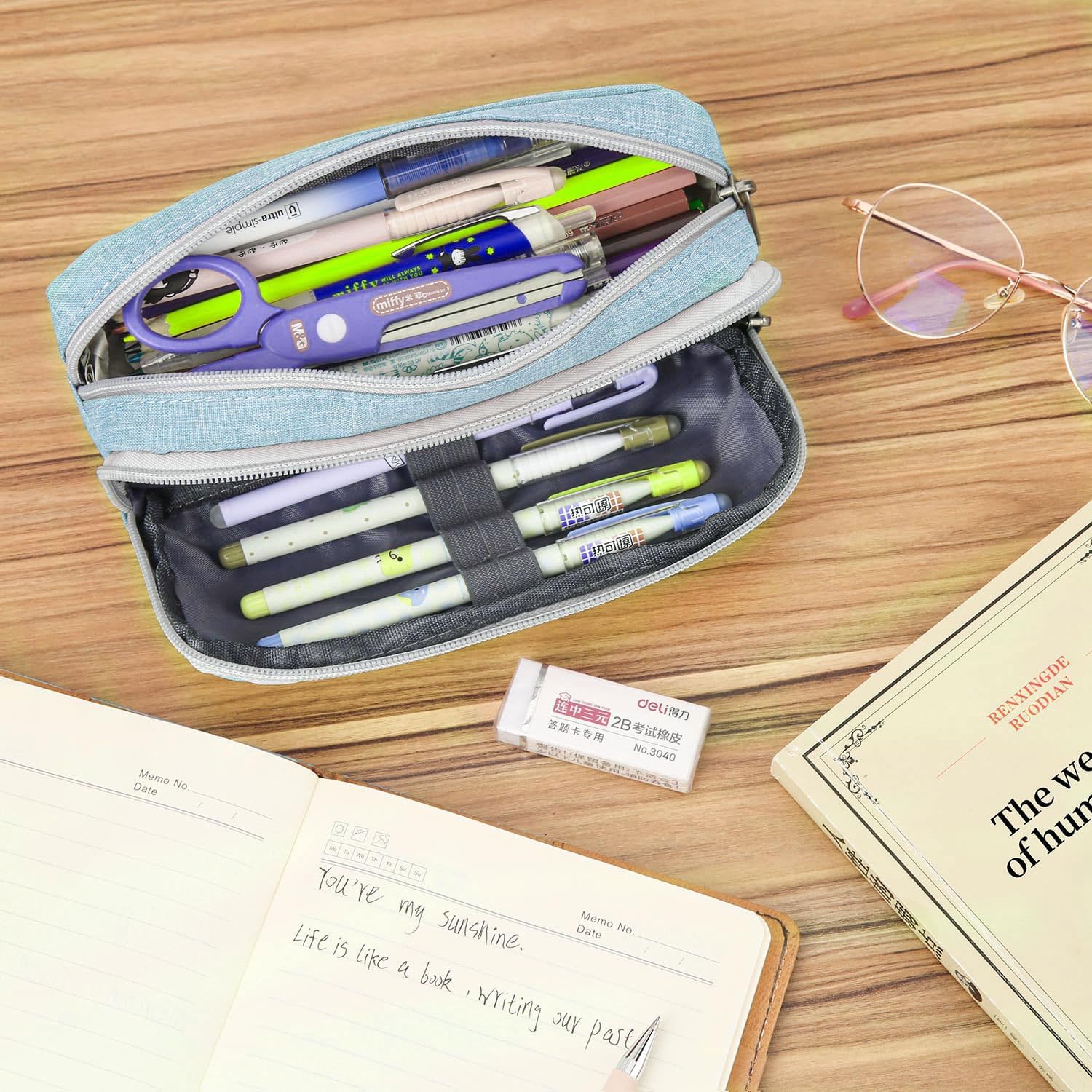Della Gao Pencil Case Large Capacity Pencil Pouch for Adults (Light Blue)