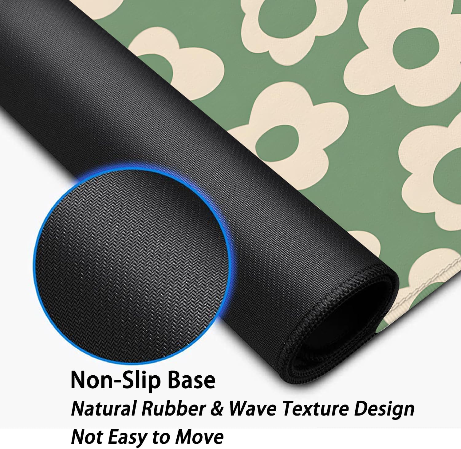 Green Daisy Flowers Desk Pad Mouse Pad,Large Daisies Floral Mouse Mat with Stitched Edges,Non-Slip Rubber Base Mousepad for Office PC Keyboard Laptop and Home Work Desk Mat(27.5X11.8 in)
