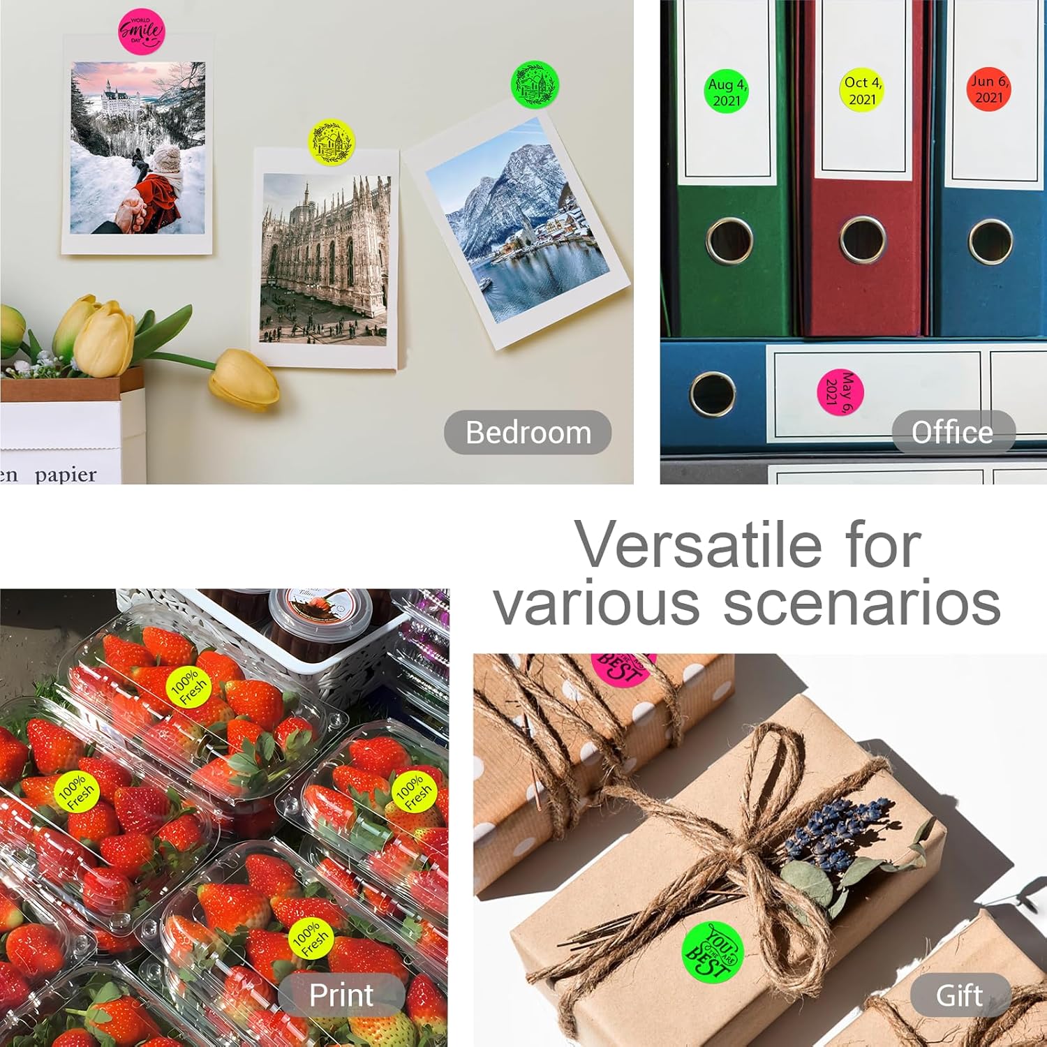 - Writable and Printable Labels: 1 inch color coding label dots allow to write messages with a pen, pencil, colored pen, whiteboard pen, etc. You can also use these colored round stickers in a thermal printer