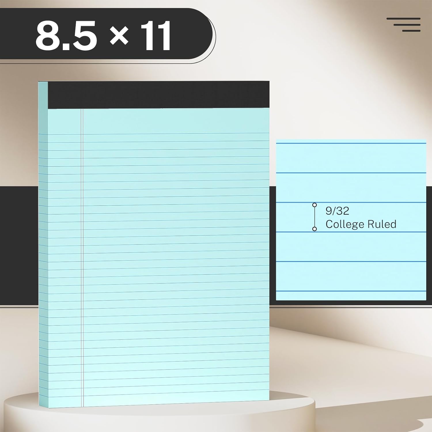 300 Sheets Blue Legal Pads 8.5 x 11 College Ruled Paper 6-Pack Note Pads Narrow Ruled 50 Sheets per Notepad Perforated Writing Pad Durable Sturdy Back 8x11 Pads of Paper