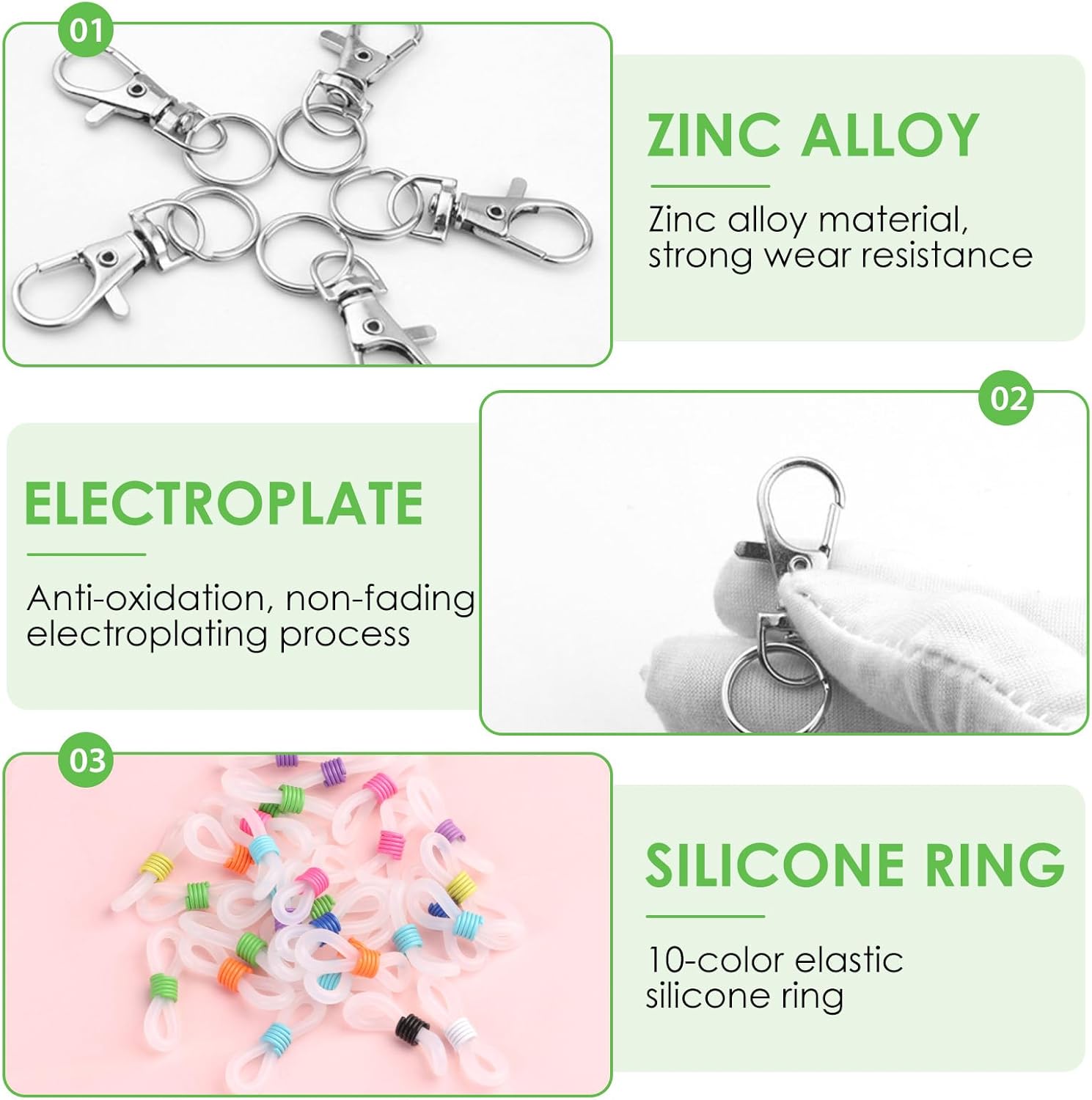 - Colorful and Customizable DIY Matching: Customize your clips by using silicone rings on the lobster clasp to hold multiple pens or other items simultaneously, catering to various needs. This flexibility adds a stylish touch while keeping your accessories well-organized and easily accessible