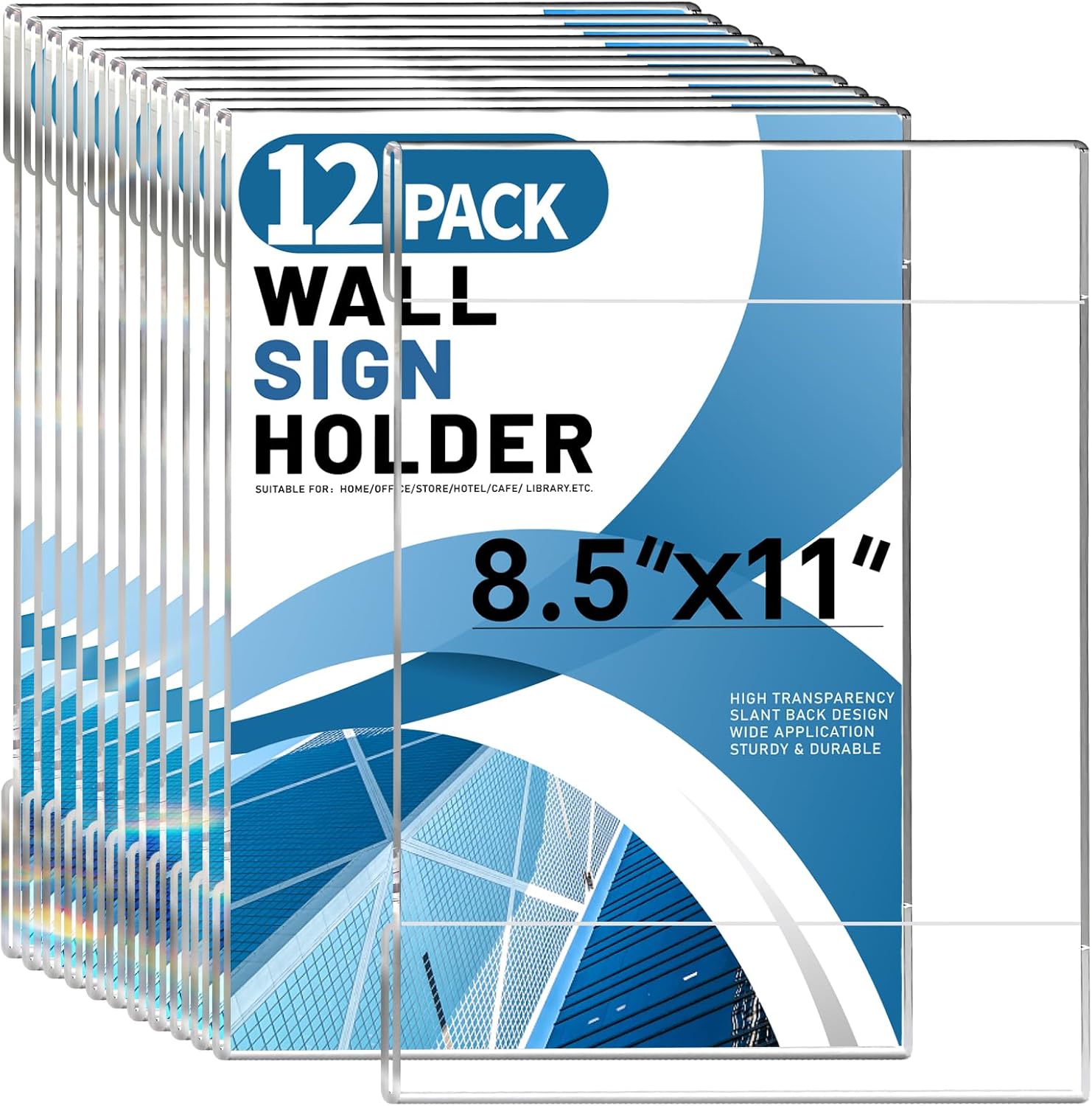 - Super Adhesive Tape: You will receive 12pcs acrylic wall sign holders with super adhesive tape. NOTE: Our tape is not glued to the acrylic wall sign holders, it comes with the package, this is to make it easier for you to cut your own as needed. Each clear wall mount frame measures 8.5*11 inches and will fit most occasions