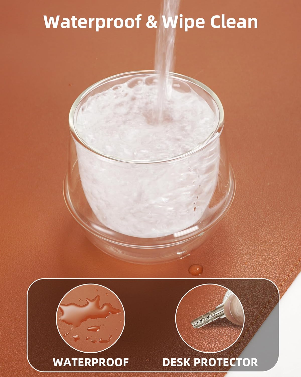 - DESK PROTECTOR:Triple-Threat Protection + Workspace:Engineered to shield desktops from scratches, coffee rings (heat-resistant to 212°F), and spills (wipes clean for 24hrs). Reinforced with stealth-matched jet-black stitching that locks in durability. Serves as:Surface can be used as a large mouse pad, comfortable resting surface for your hands while writing, typing, and using the mouse. A must have office or study supplies.