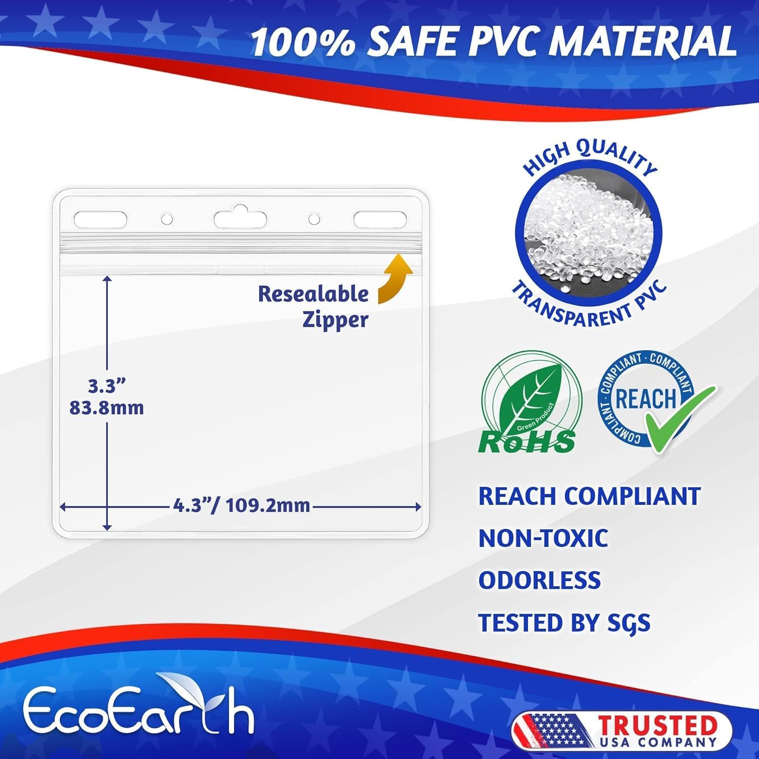 EcoEarth - Horizontal PVC Card Protector with Metal Clips and Vinyl Straps with Soft Edge - Sealable Fits 4x3 inch Inserts - Clear, 10 Pack - Waterproof ID Holder Bulk - ID Card Holder