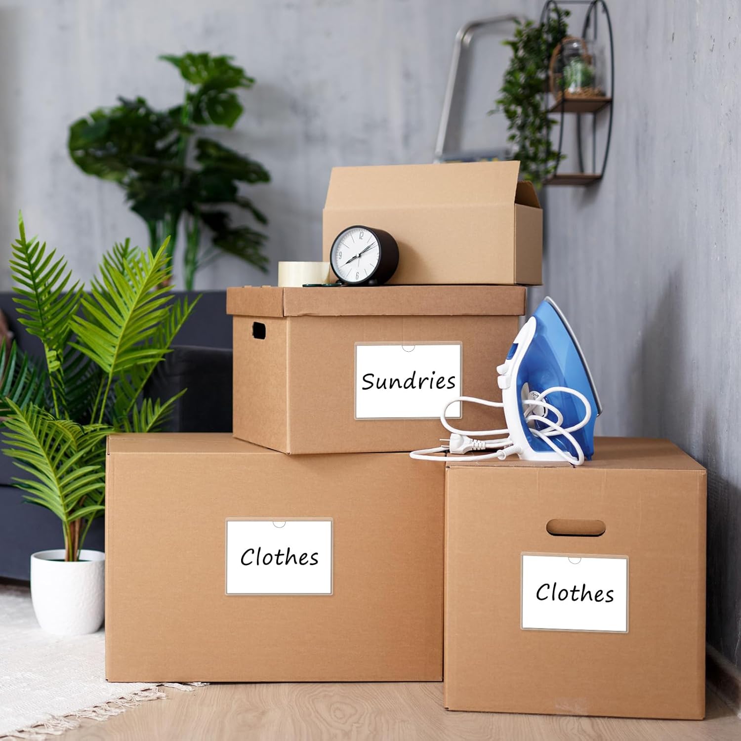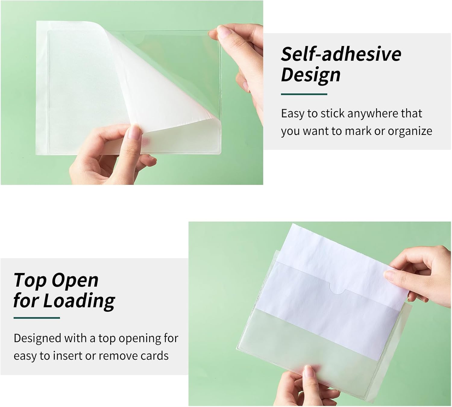 52 Pack Clear Adhesive 4" x 6" Index Card Pockets With Top Open, Plastic Card Sleeves Index Card Holder for Organizing Storage Bins, Library Cards, Notes, Drawer