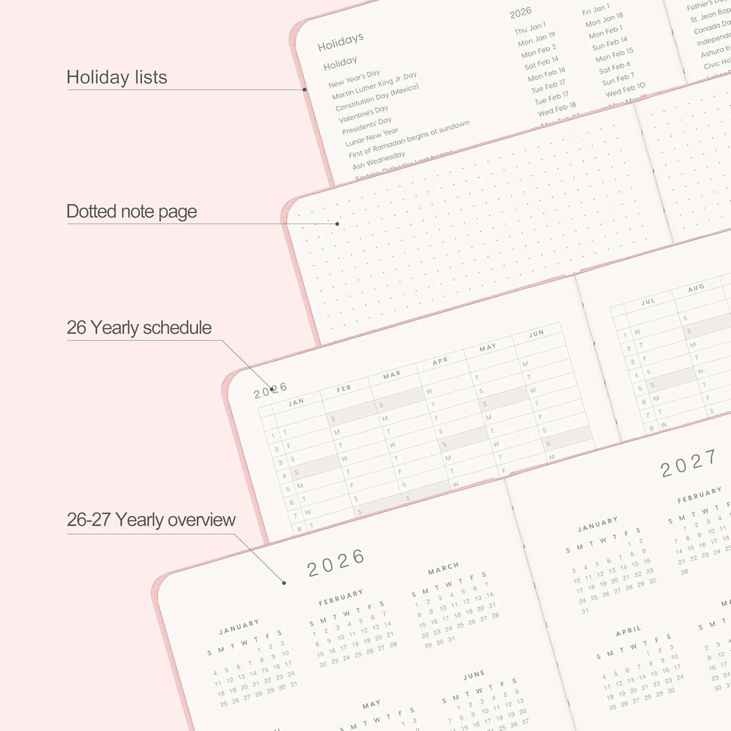 And Per Se 2026 Planner-Daily, Weekly & 15-Monthly Leather Hardcover Planner, 5.7" x 8", Daily Schedule, Monthly Tabs, 100 GSM Thick Paper, Back Pocket(Pink)