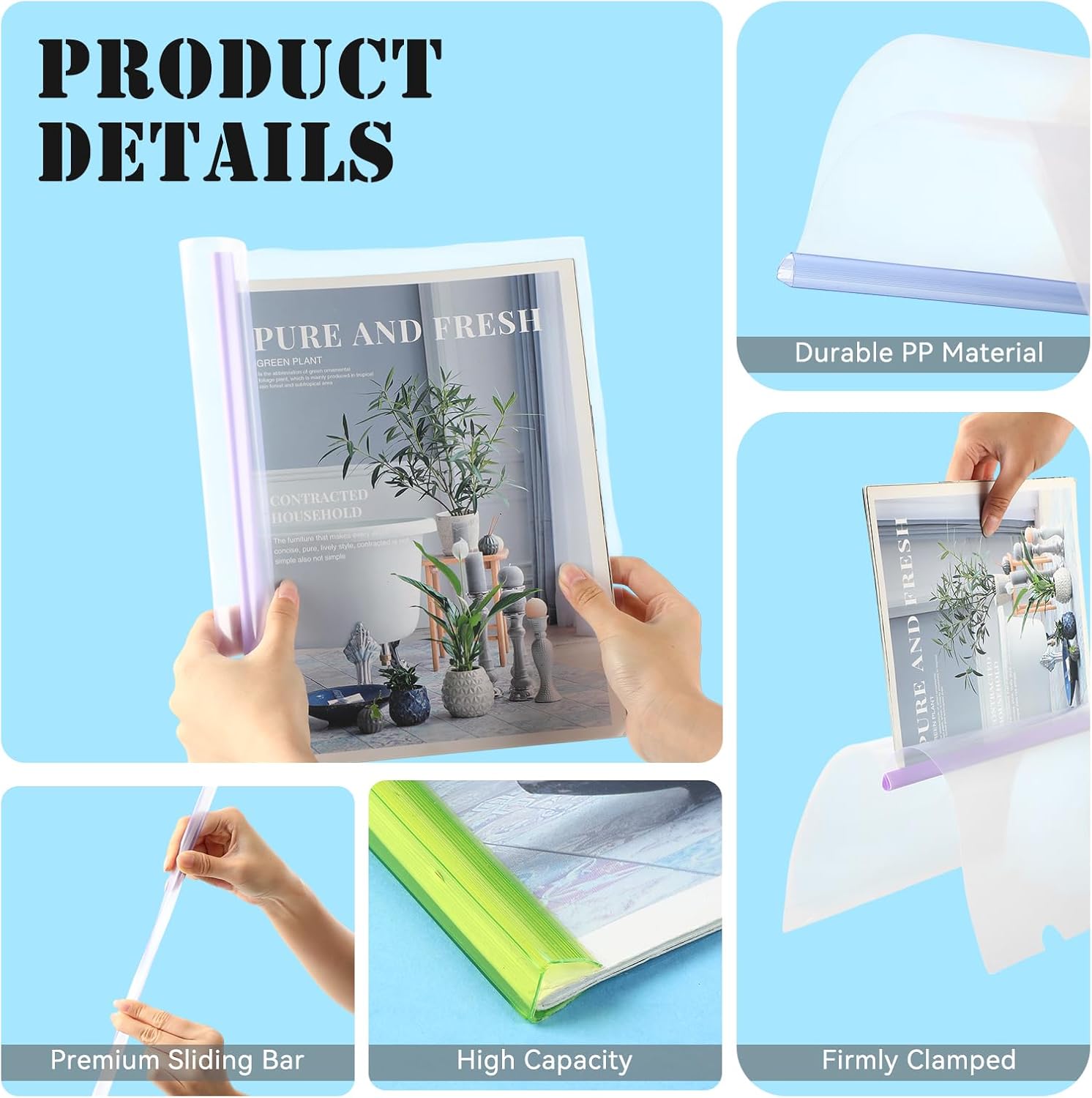 - Detailed Size: the clear plastic binder with sliding bar measures about 31 cm/ 12.2 inches long and 22 cm/ 8.6 inches wide, 50 sheet capacity, slightly bigger than A4 paper, can avoid your paper from bending and getting wet, offering you a long term of use