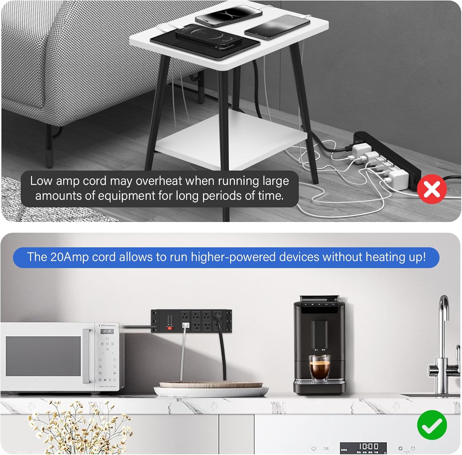 CCCEI 2PCS Heavy Duty Power Strip Surge Protector 20 AMP, 8 Outlets 12 Gauge Shop Garage Metal Multiple Outlets, 4 FT Extension Cord 5-15P Adapter High Amp 6-20R T-Slot 20a for Appliance Black.