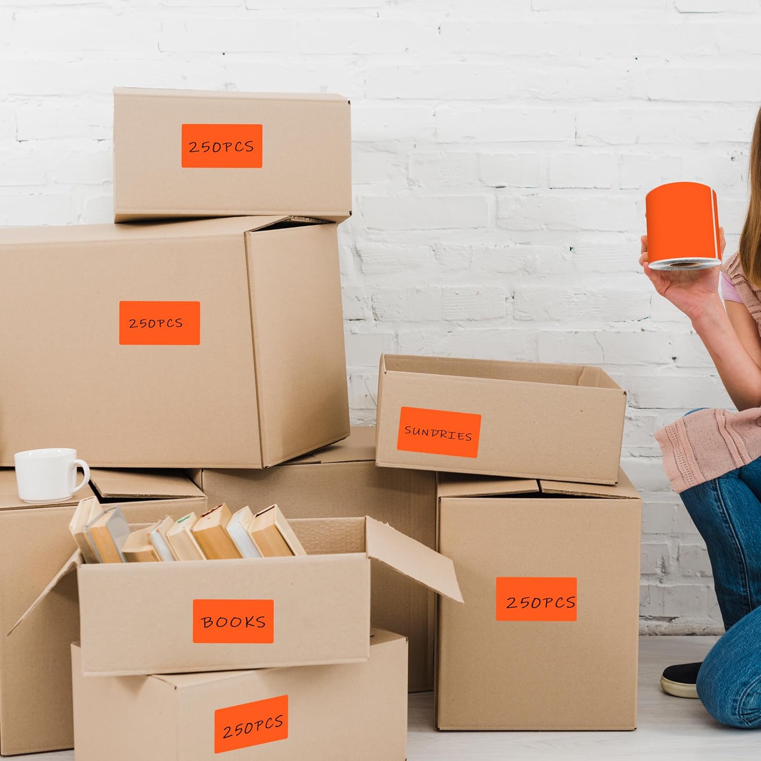 3 x 5 Inch 250Pcs Rectangle Color Coding Stickers,Strong Adhesion Easy to Write Label for Moving,Box Organization,Inventory,Business,Light Orange