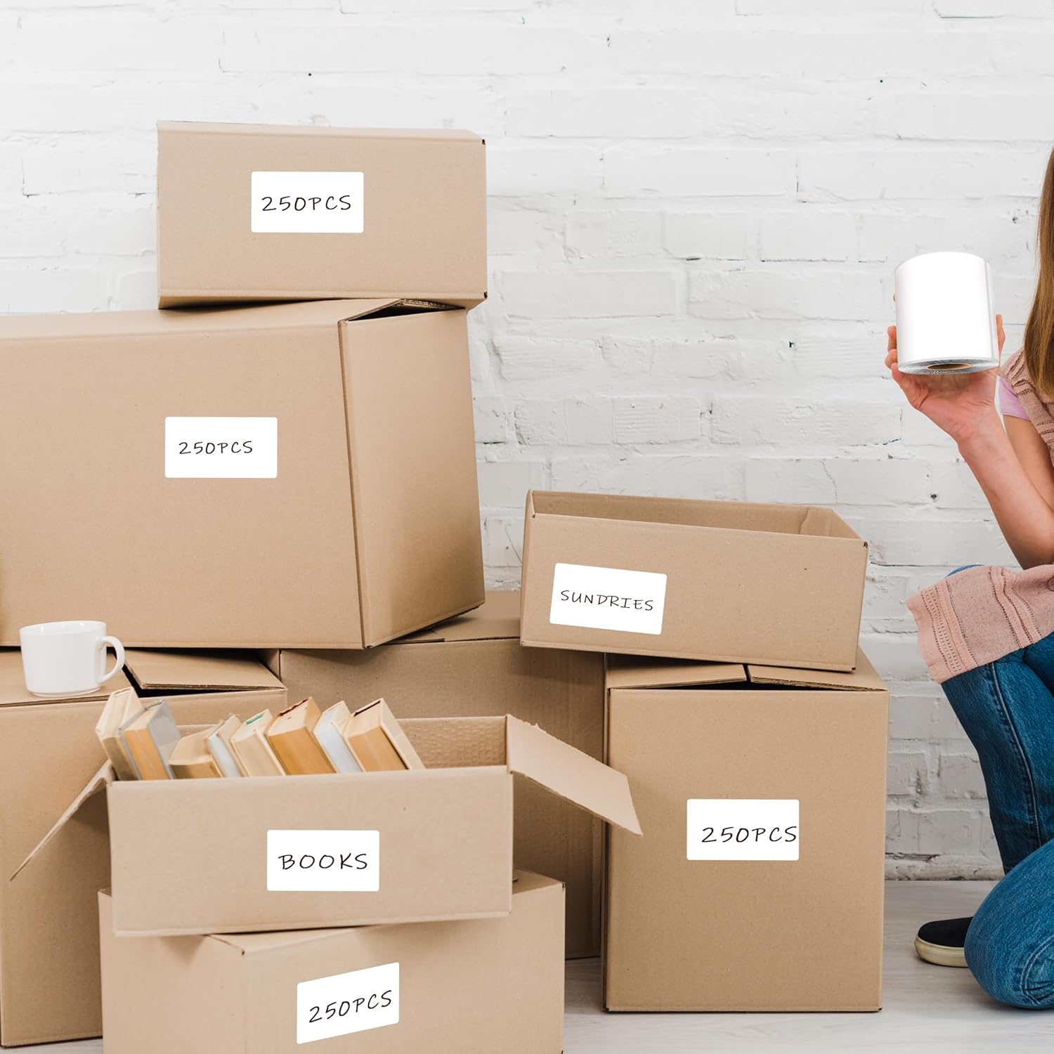 3 x 5 Inch 250Pcs Rectangle Color Coding Stickers,Strong Adhesion Easy to Write Label for Moving,Box Organization,Inventory,Business,White