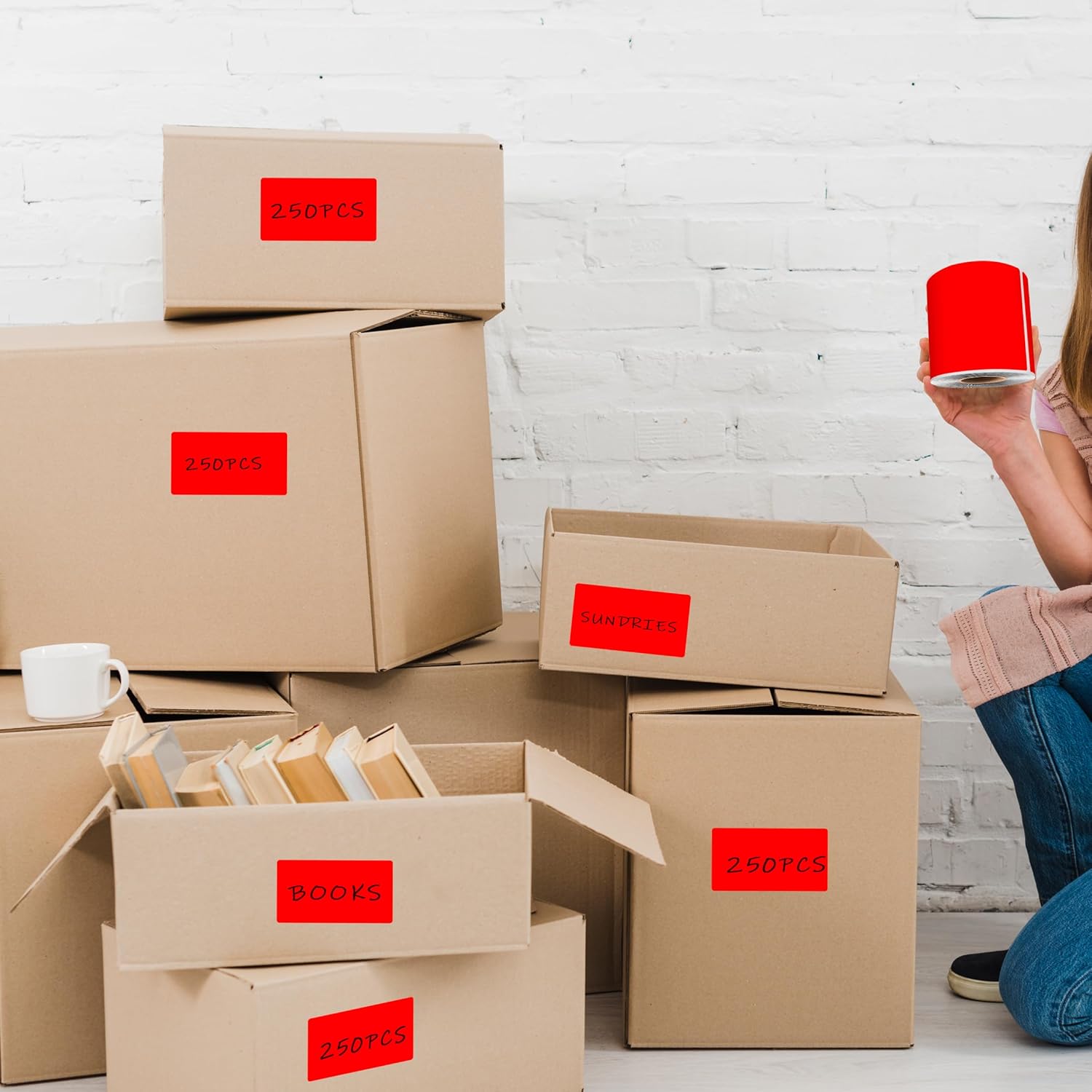3 x 5 Inch 250Pcs Rectangle Color Coding Stickers,Strong Adhesion, Easy to Write for Organization,Inventory,Business Labeling,Red
