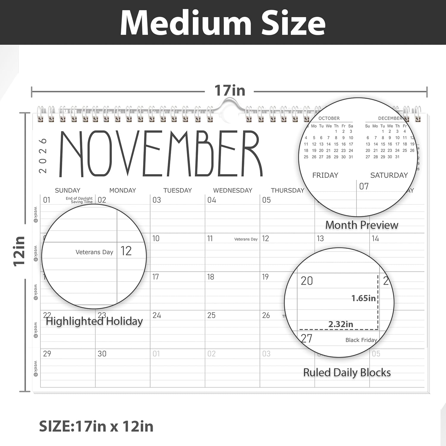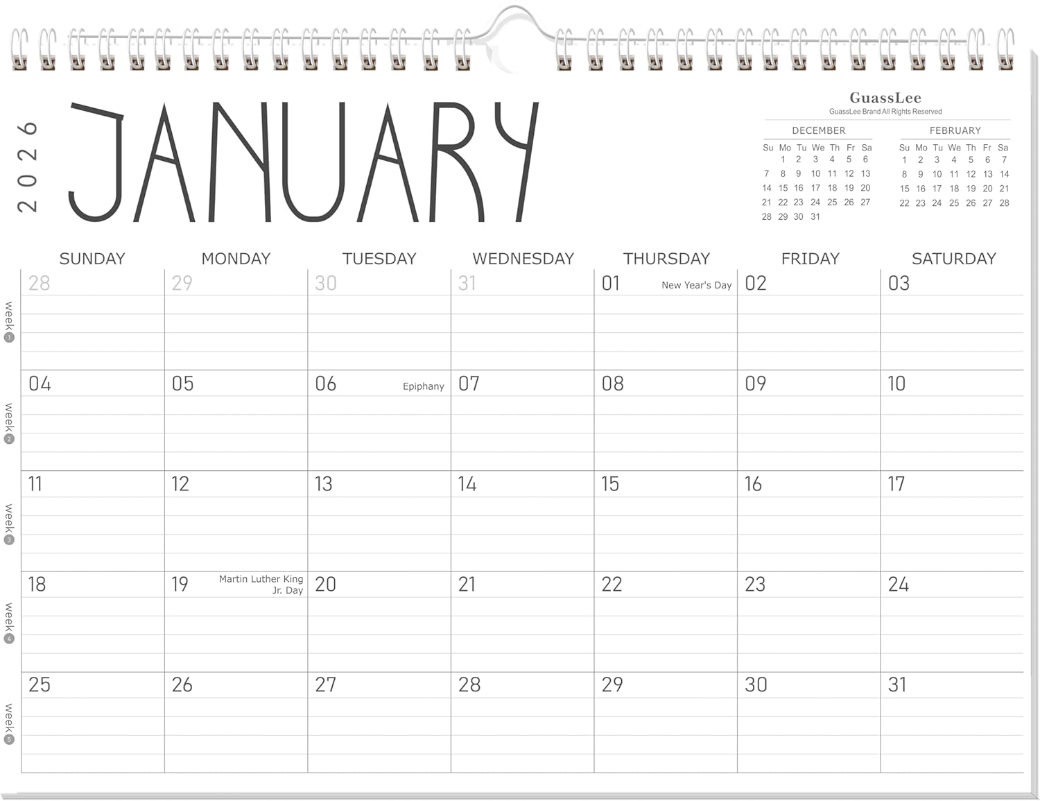 GuassLee Wall Calendar 2026 12 Months Planner Through Jan. 2026 to Dec 2026 17" X 12" Paper Monthly Planner Wall Hanging Calendar with Thick Paper for Easy Organizing