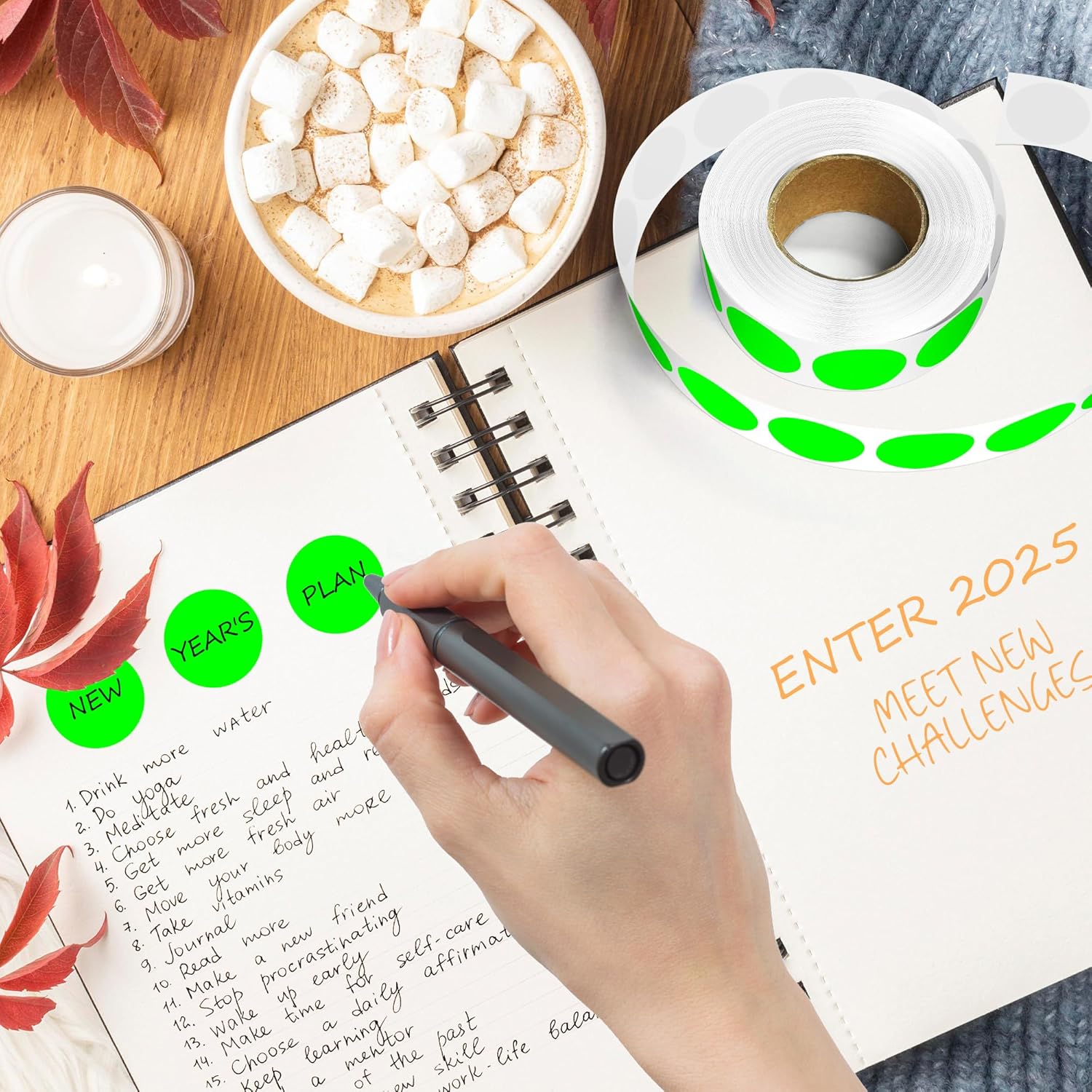 Fluorescent Green 1 Inch Round Color Coding Dot Labels, 10 Rolls 10000 Dot Stickers in Dispenser Box - Permanent Adhesion, Vibrant Colors, Highly Visible