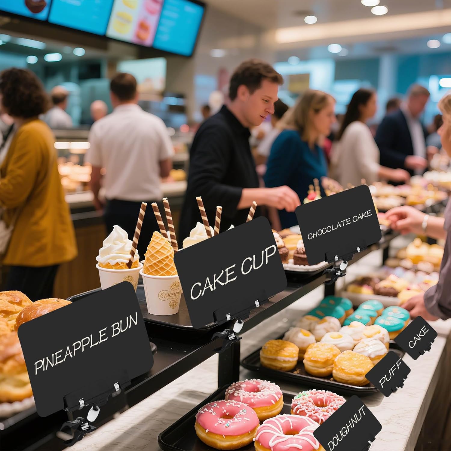 - Waterproof Eraseable and Reuseable: This food labels for party buffet is easy to write with any kind of liquid chalk markers (can't write with chalk), and easy to wipe away with sponge, and it is completely waterproof, can be reused