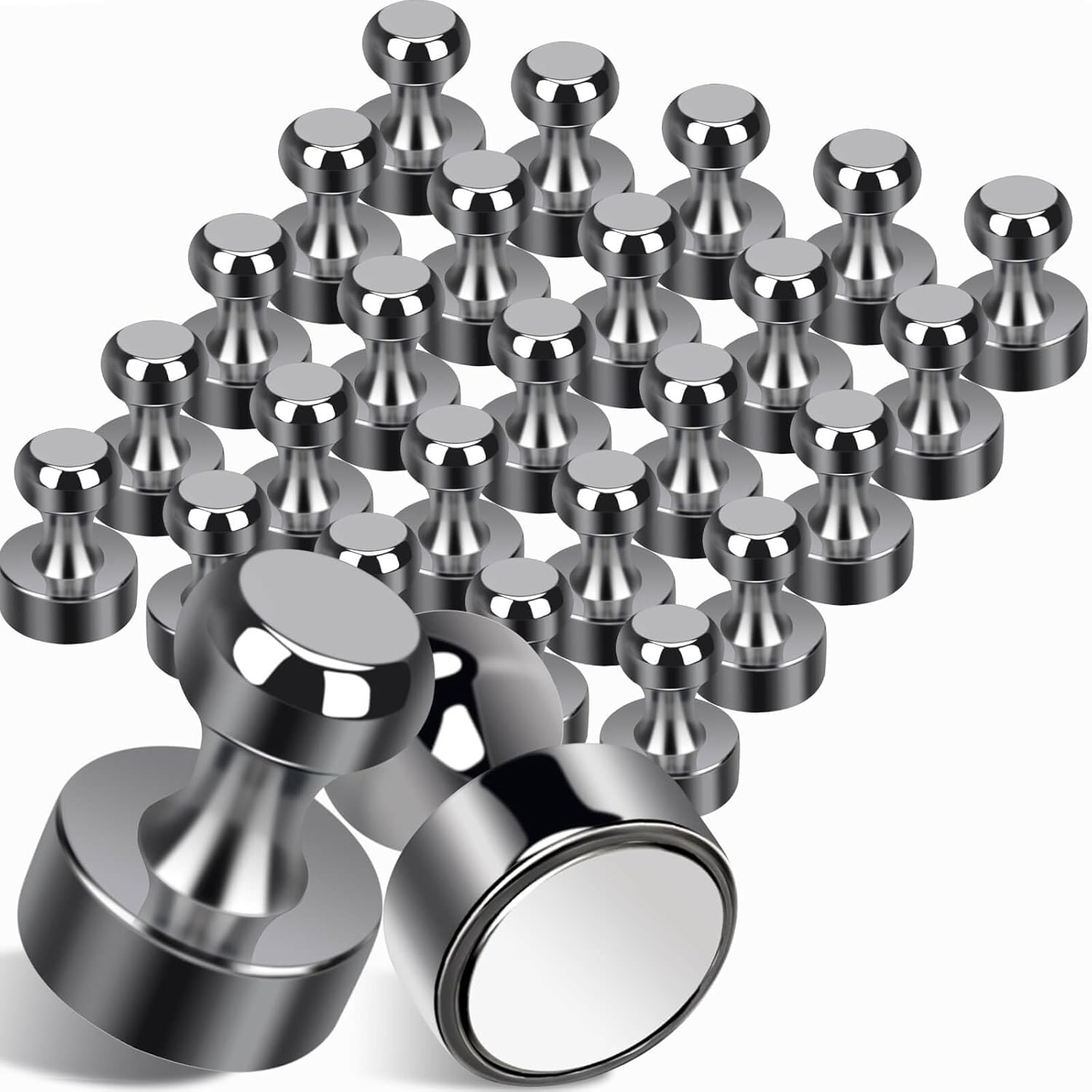 - 【Small But Strong】Our refrigerator rare earth magnets are more magnetic than ferrite magnets, rare earth magnets have greater suction. It can hold up to 15 sheets of A4 printer paper at once with small push pin magnets. Size: 0.47"D x 0.66"H, pack of 25