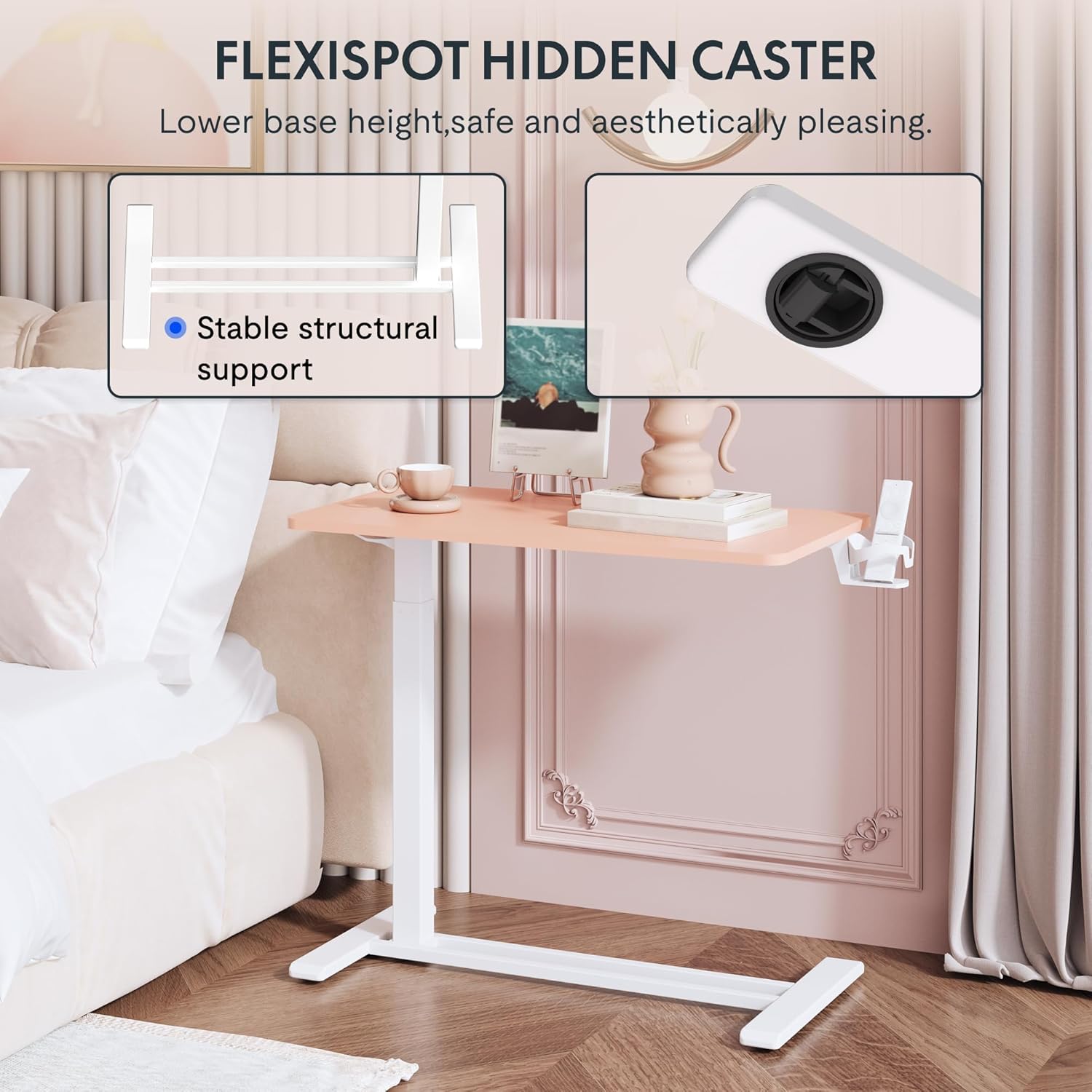 FLEXISPOT Mobile Standing Desk with Wheels Pneumatic Laptop Rolling Computer Cart Movable Height Adjustable Small Sit Stand Desk Computer Workstations Home Use(27.6" W x 15.7" D,Pink