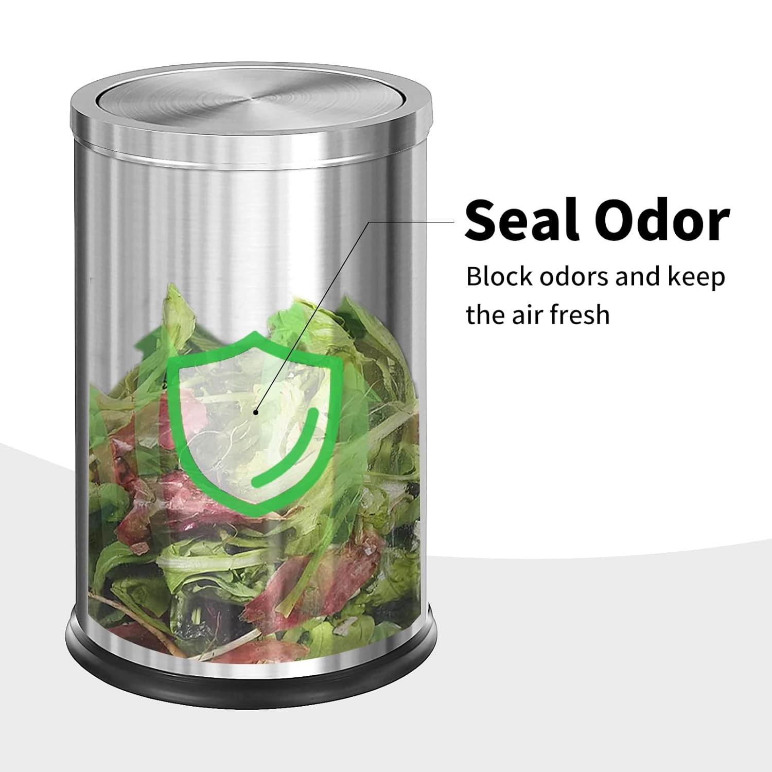 - 【Made of Material】 Stainless steel Cover made , It's Fingerprint-Proof , Rubber Pads on base for Non-slip,Mute flip cover,Titanium wire drawing process,it's sturdy and durable garbage can.